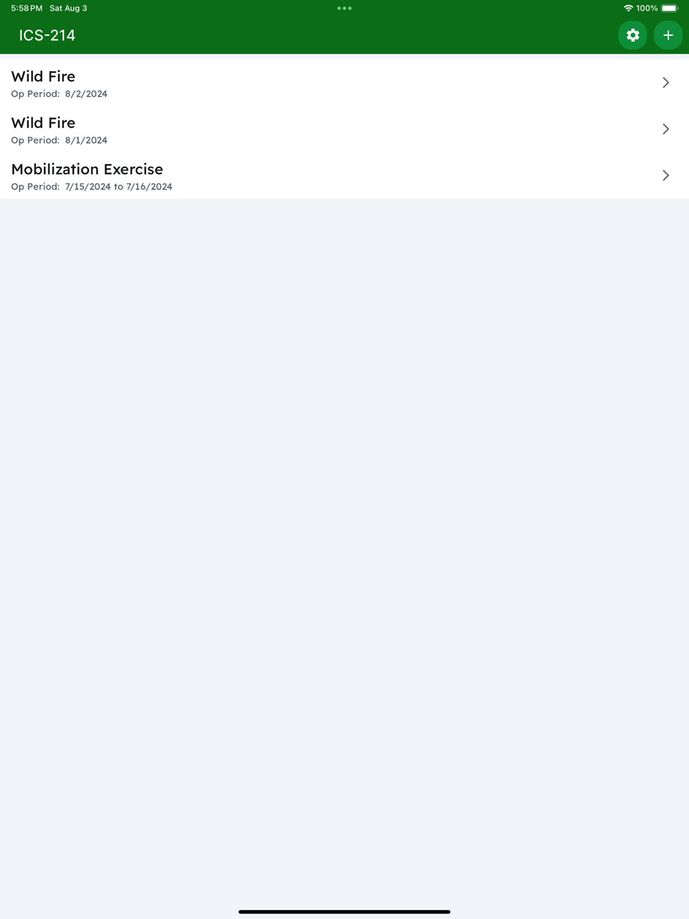 Use the "214 Default Fields" option in settings to set defaults that will pre-populate new ICS-214 forms upon creation. This will save time when working the same incident and/or with the same team for multiple operational periods.