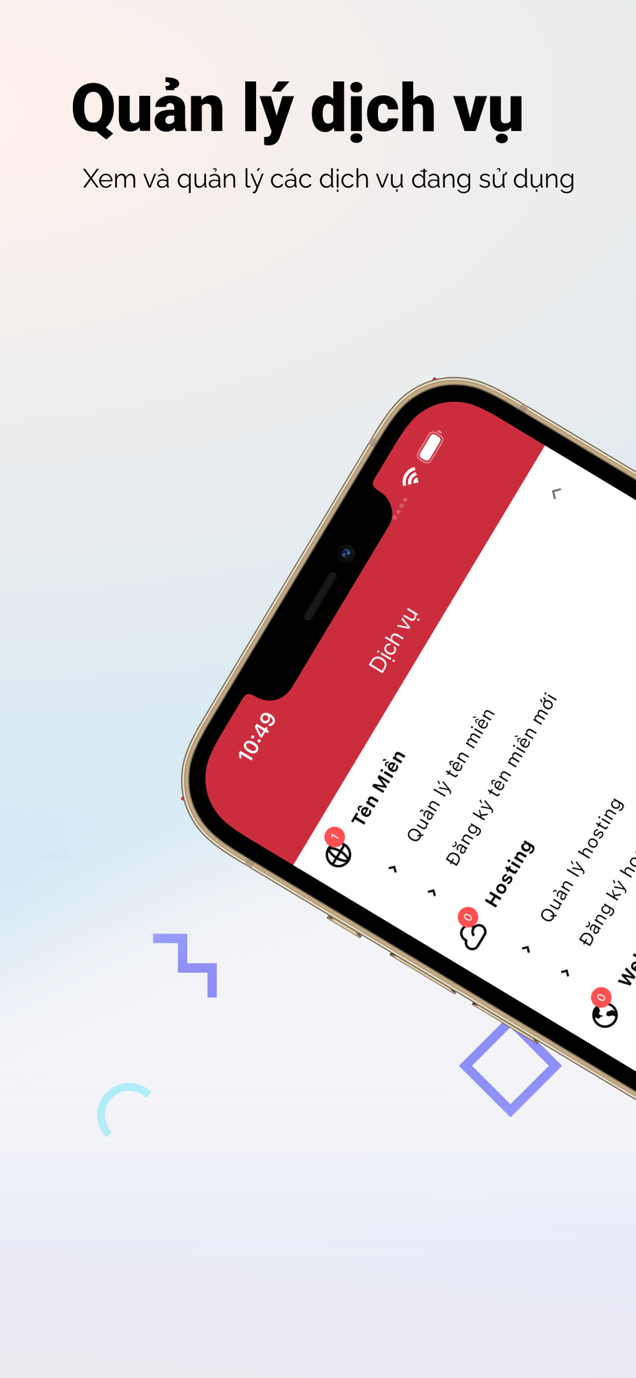 - Quản lý dịch vụ: Truy cập và quản lý thông tin các dịch vụ tên miền, hosting, và các dịch vụ khác một cách thuận tiện.