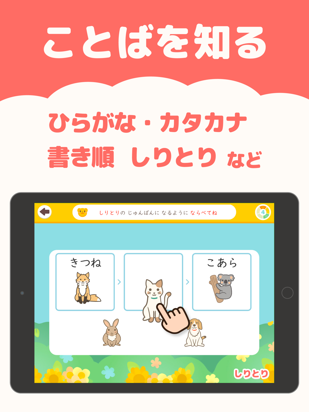 すうじ・ひらがな・ことばのゲームがドリル形式で楽しく遊びながら身に付きます。