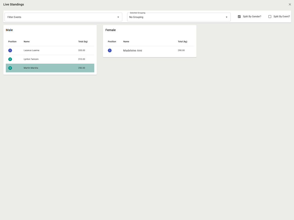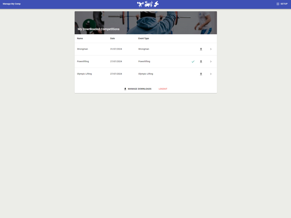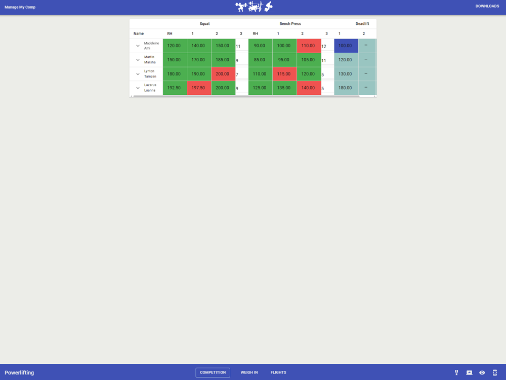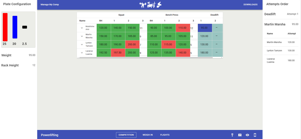 ManageMyComp.com is a suite of competition meet scoring software that drastically reduces the overhead of managing powerlifting, strongman and Olympic lifting competitions - from registering competitors to accessing the day's results.