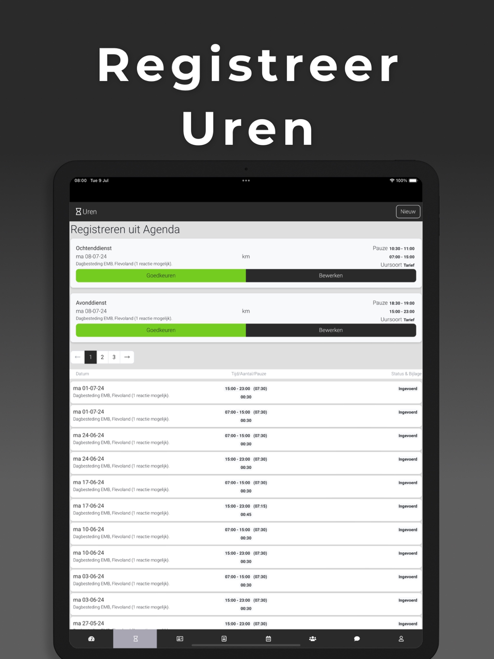 De App is gekoppeld aan het systeem waardoor informatie altijd up-to-date is, via een overzichtelijk dashboard. Bovendien komen belangrijke meldingen, als nieuw beschikbare opdrachten, via een push melding binnen op het apparaat. Zo zie je niets over het hoofd. Ook wijzigingen worden direct zichtbaar, ook in de agenda. Je bent dus altijd op de juiste plaats aanwezig.