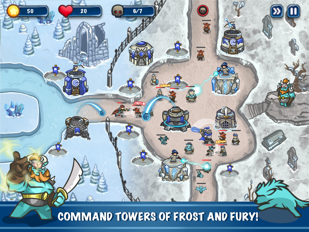 Immerse yourself in Everfrost, a thrilling tower defense game where strategy is key. Build and upgrade your towers to fend off relentless enemies and prevent your kingdom from being conquered. Inspired by kingdom games and Fieldrunners, this war strategy game will test your tactical prowess.