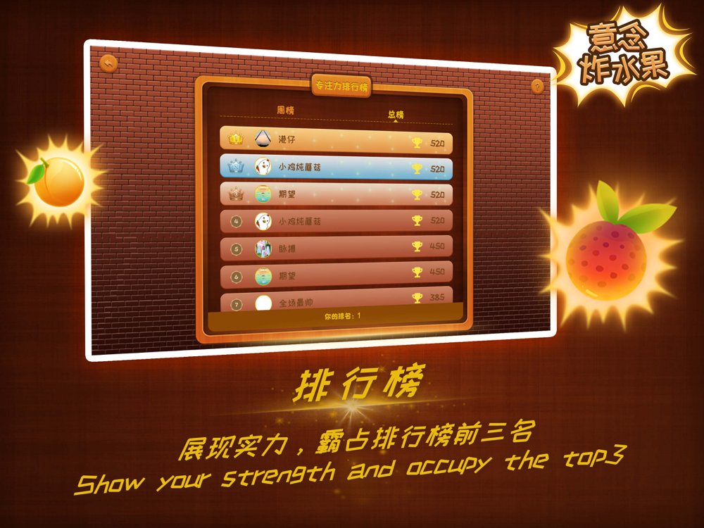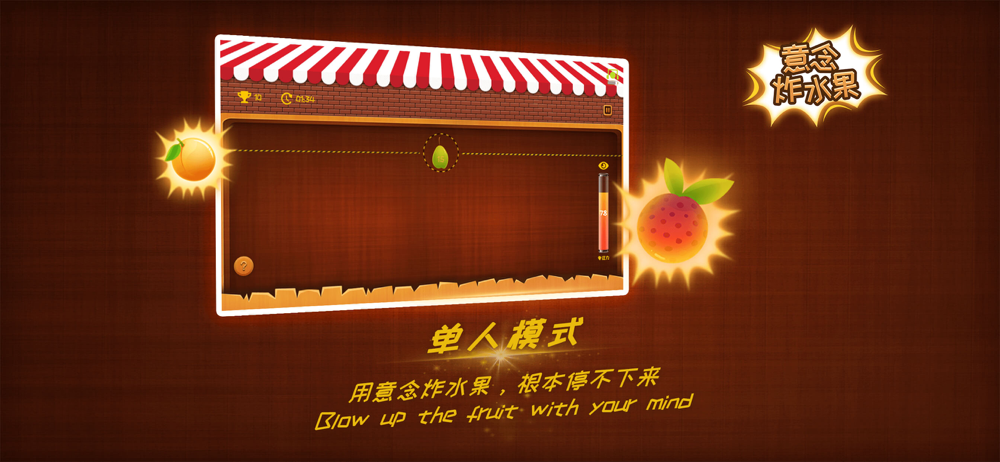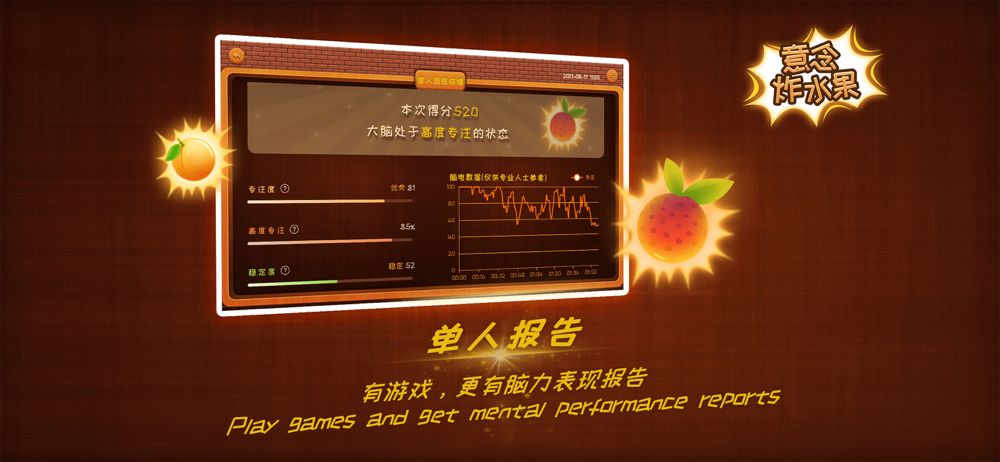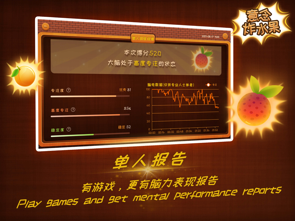 A fascinating "mind fried fruit" is a concentration training leisure game using brain wave technology, which is different from the traditional manual fruit cutting method of classic fruit fried or fruit ninja. It only needs the player's attention to fry the fruit with his mind, and the fruit can be detonated with his mind power. The fun of frying fruit with ideas is not only a simple game of frying fruit with ideas, but also a will game that can enhance players' concentration.