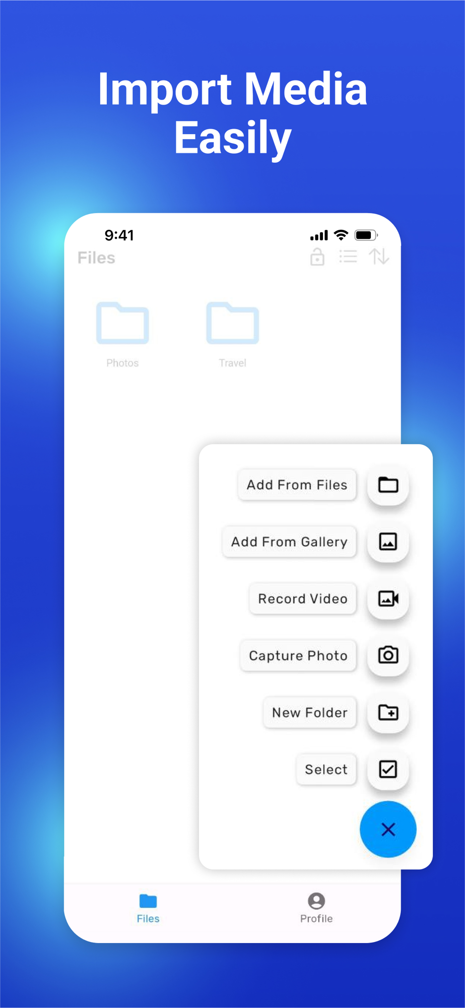 Import Media & Docs: Seamlessly transfer and import your media files and documents from your gallery and folder, ensuring all your important data is securely stored and easily accessible within the app.