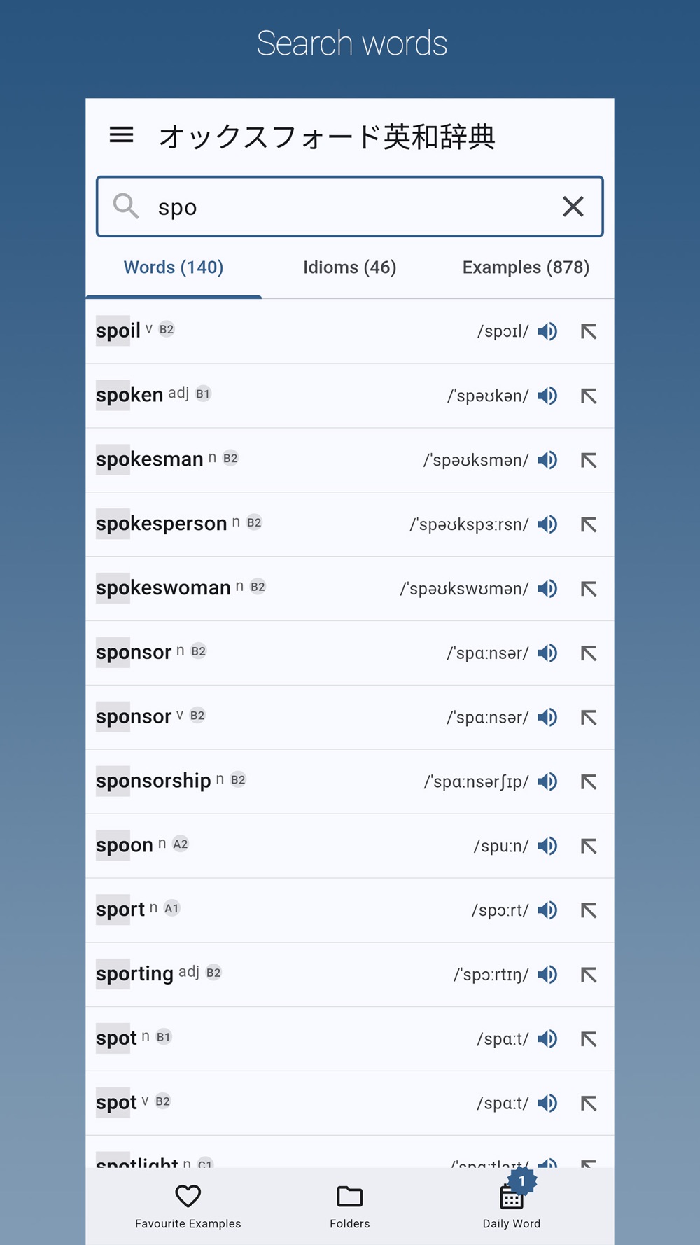 Search: You can search for words, idioms and examples at the same time quickly and accurately.