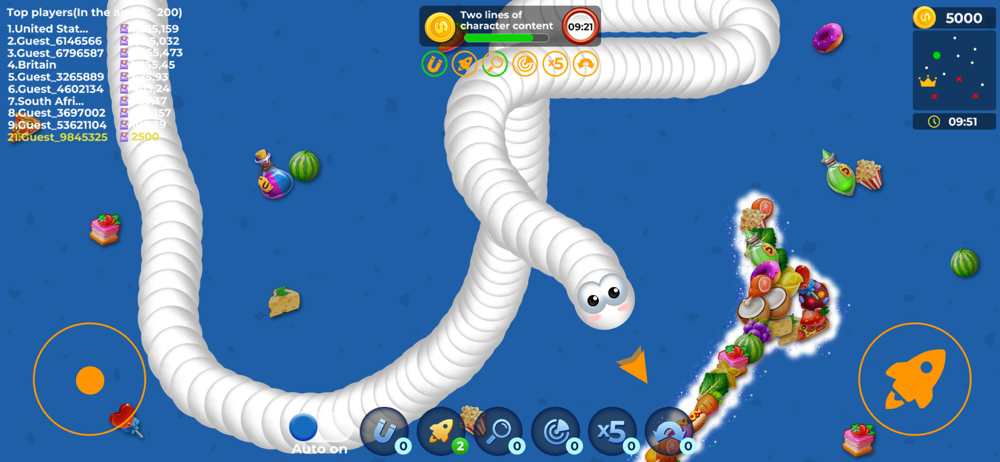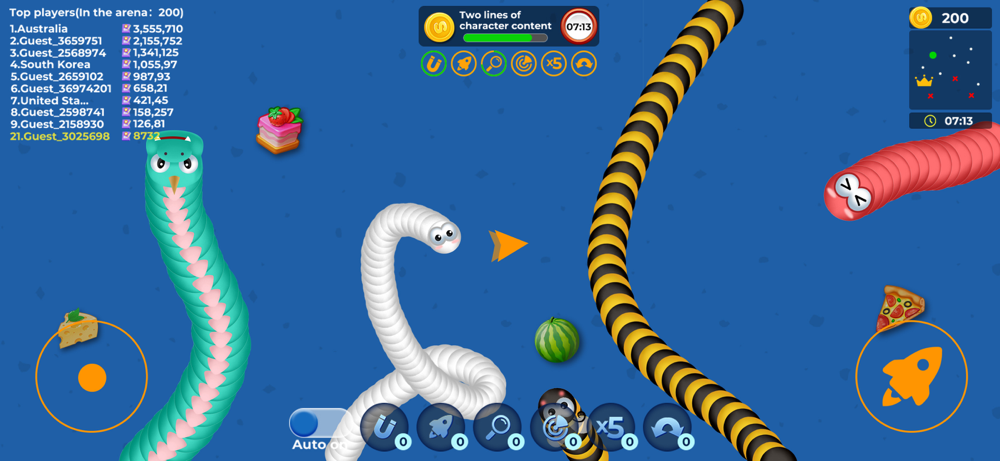 Get ready for epic showdowns! Test your skills and strategy as you face powerful opponents within the time limit. Can you manipulate your snake to defeat these powerful foes? Prove your mettle, conquer your opponents, and reach new heights in the Snake Zone .io universe.