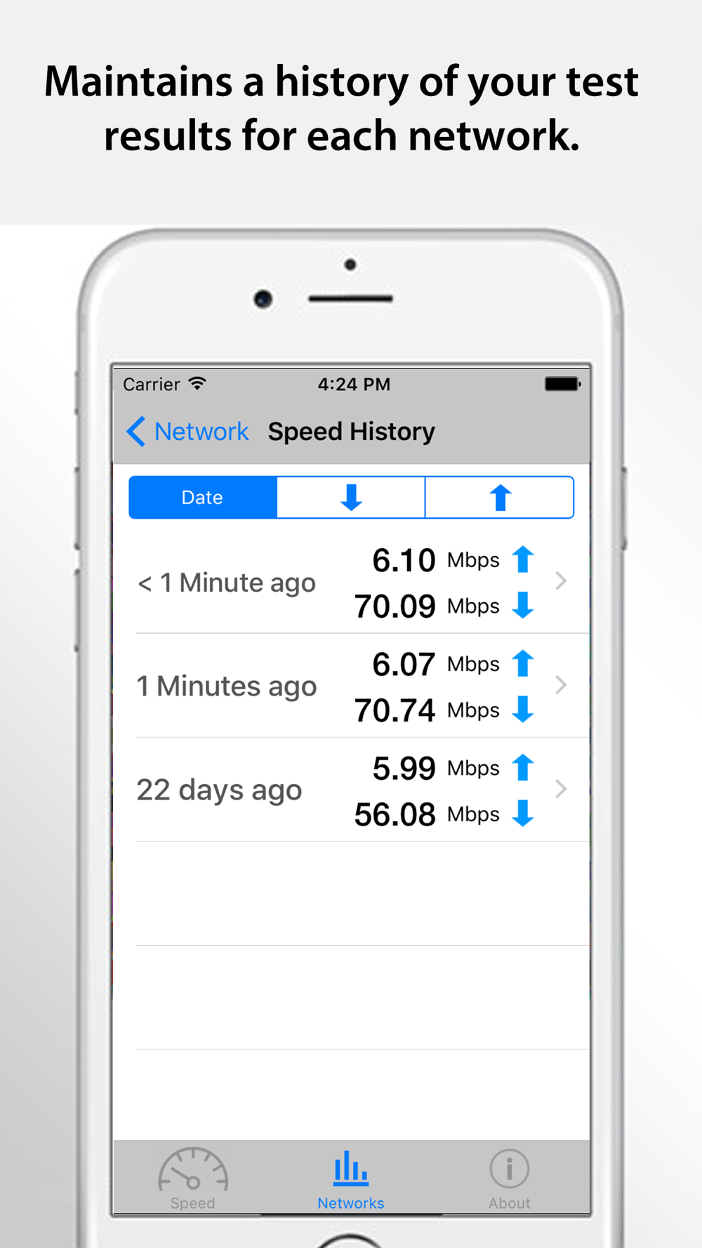 Use Net Speed to monitor your cellular (3G/4G/LTE) or WiFi connection rate and response for your device. With a real-time graphical display, results are updated continuously during the testing procedure. This simple, easy-to-use app provides consistent, accurate internet speed testing from any location. A simple test app to determine your true mobile speed.