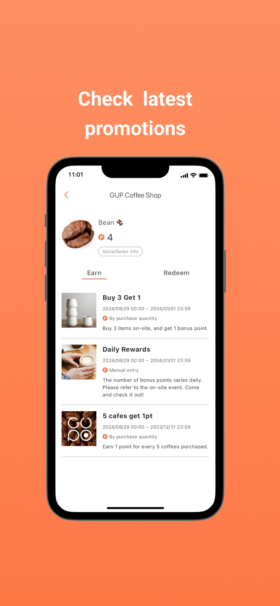 When you purchase from sellers who use GUP Reward Point (Store) app to provide rewards and points to regular customers, you will be encouraged to download this app so that you can use both phone numbers and unique QR Code to earn and burn reward points real-time from sellers. You can review points balance, transactions, and promotion news from sellers in the app.