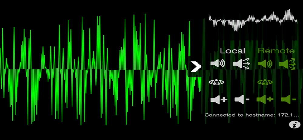 Lanza el programa en 2 dispositivos iphone o ipad dentro de una misma wiffi y automaticamente podrás oir el audio de un dispositivo en el otro.