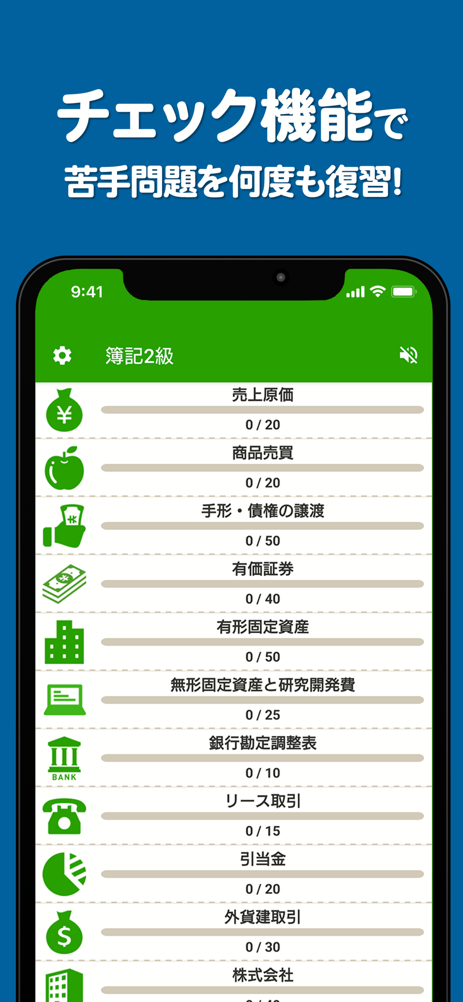 資格取得・試験勉強の強い味方。令和7年(2025年)に日商簿記二級の合格を目指すなら、このアプリを今すぐインストール!