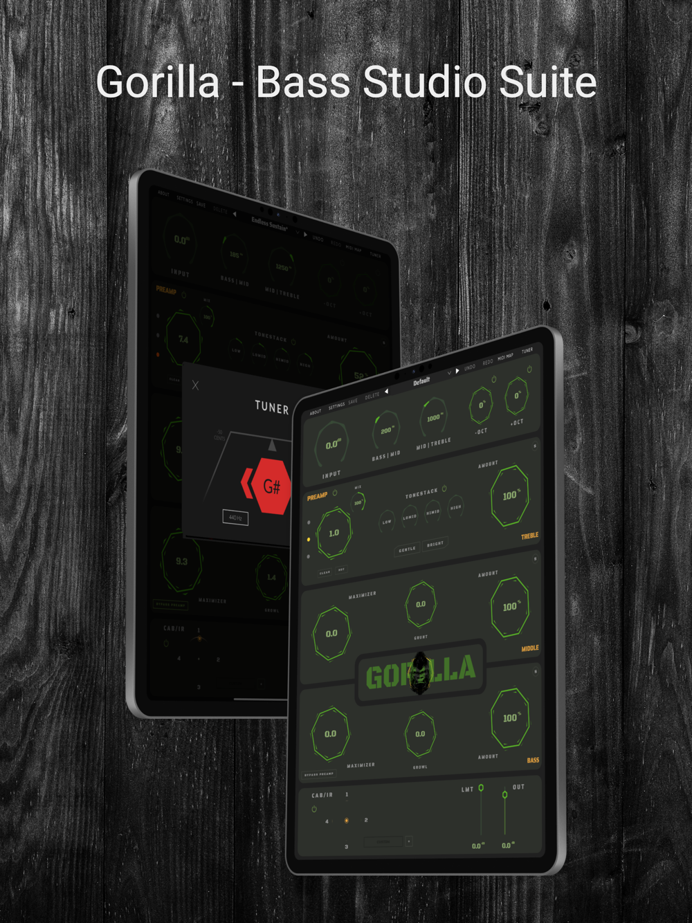 Meet the Gorilla Bass Studio Suite, the ultimate tool for bassists of all genres with midi control. This app is packed with everything you need to create pro-level bass tones effortlessly.