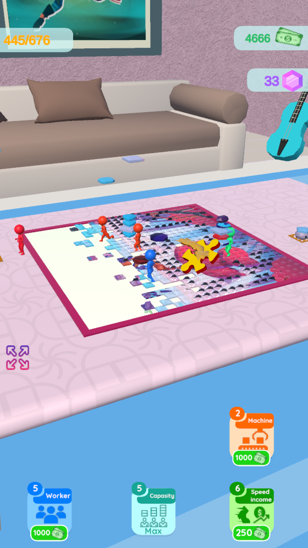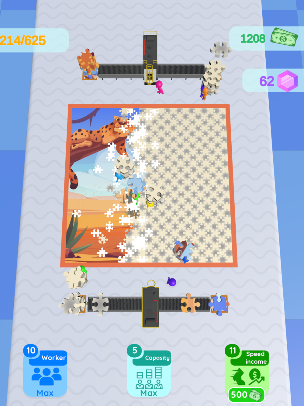 Jigsaw Puzzles ASMR is the ultimate relaxing puzzle game where you guide tiny people to carry pieces and complete stunning jigsaw puzzles. Increase your team's carrying capacity and earn money to hire more people, making each puzzle easier to solve. With each level featuring a unique puzzle, you'll never run out of challenges. Dive into a world of calm and creativity with Jigsaw Puzzles ASMR!