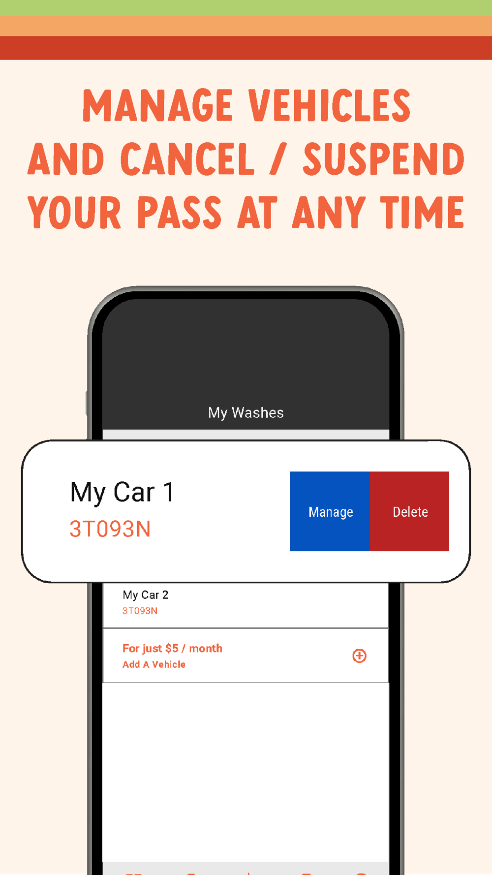 Use our app to manage your monthly wash club application.