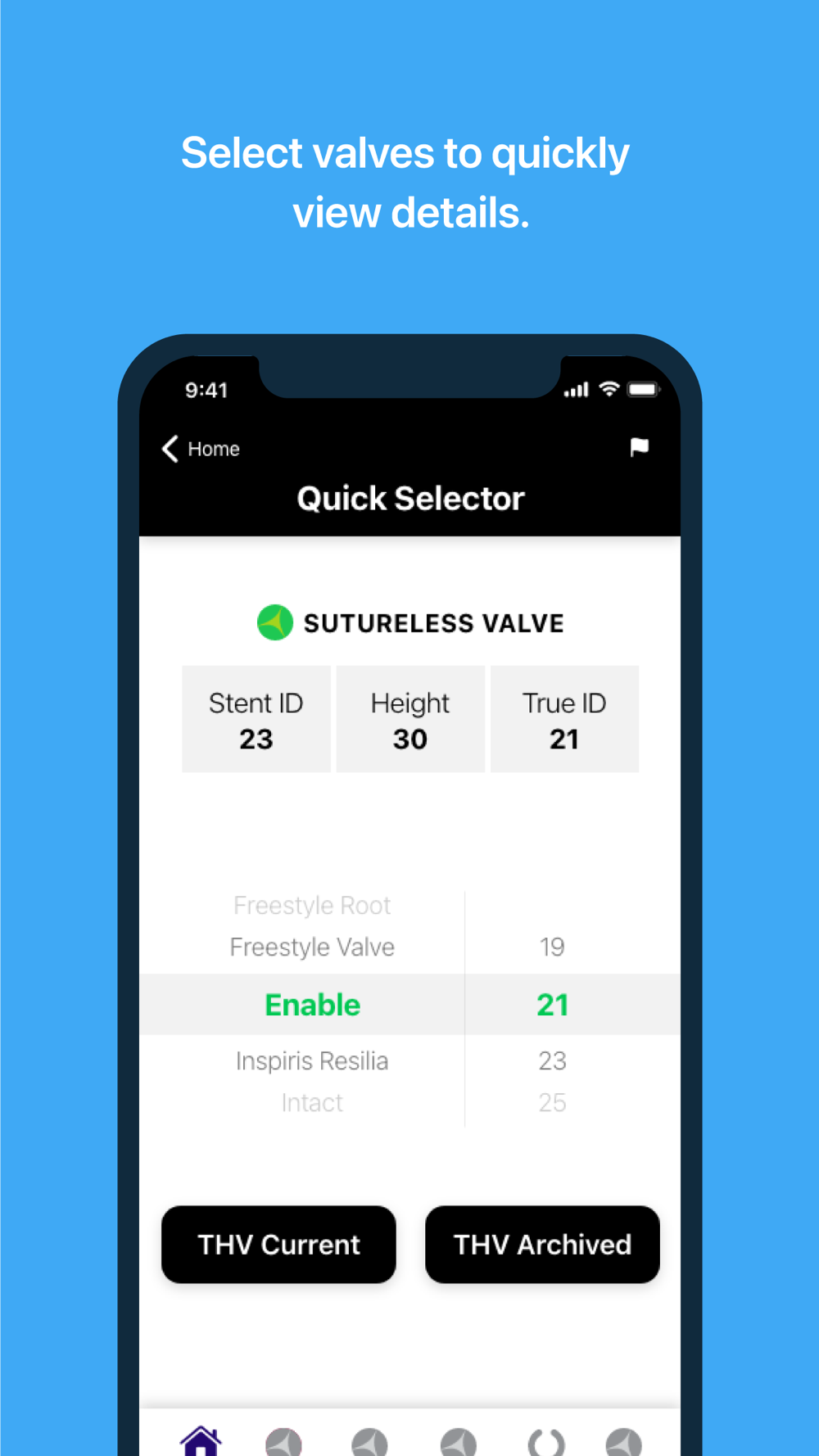Valve in Valve app provides information specific for a clinical scenario, quickly and simply. This will help in the planning of and performing a Valve in Valve case. The application navigates the user through important aspects of surgical and TAVR valve design, which are vital for a successful Valve in Valve procedure. The app logically steps through the possible combinations to give the user specific information needed to perform the procedure.