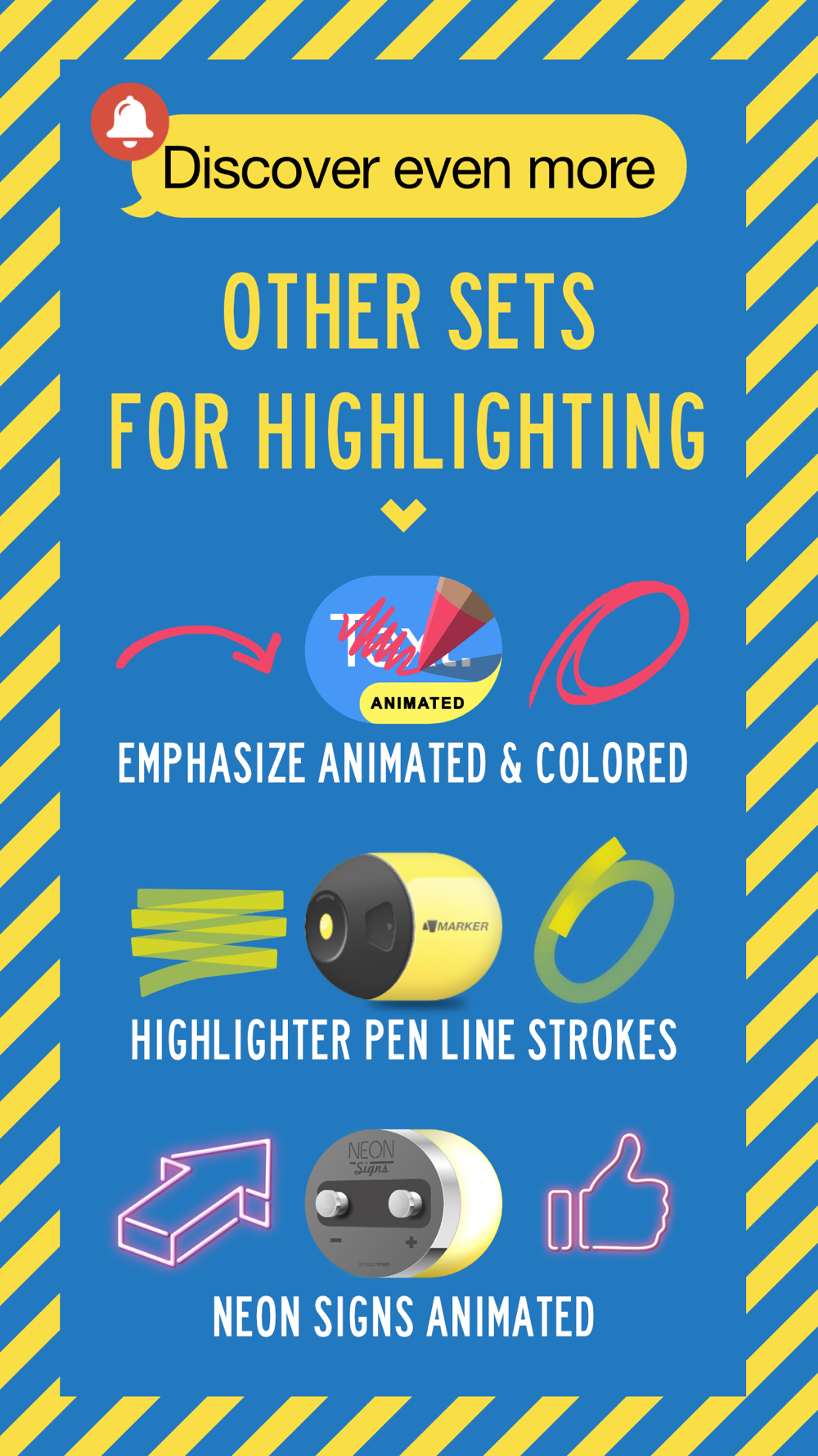 Also included in »Communication Fundamentals« containing Highlighter Pen Line Strokes, Emphasize and Verified Seal Badges as well.