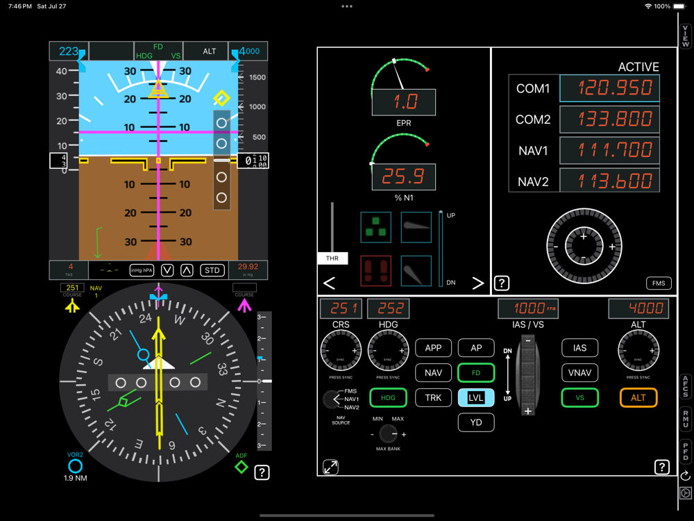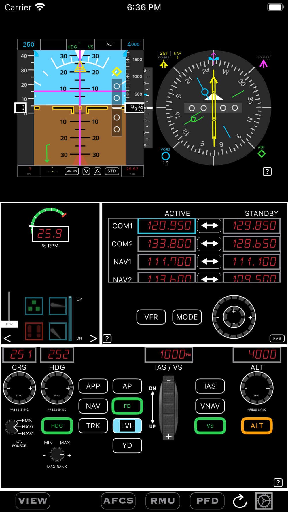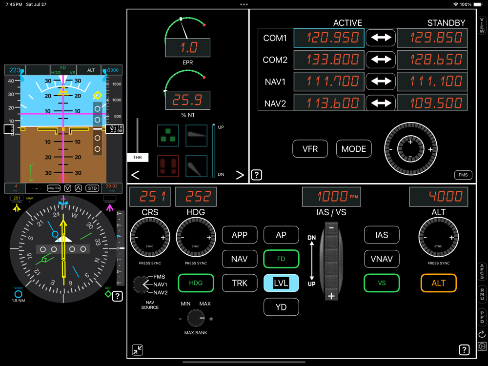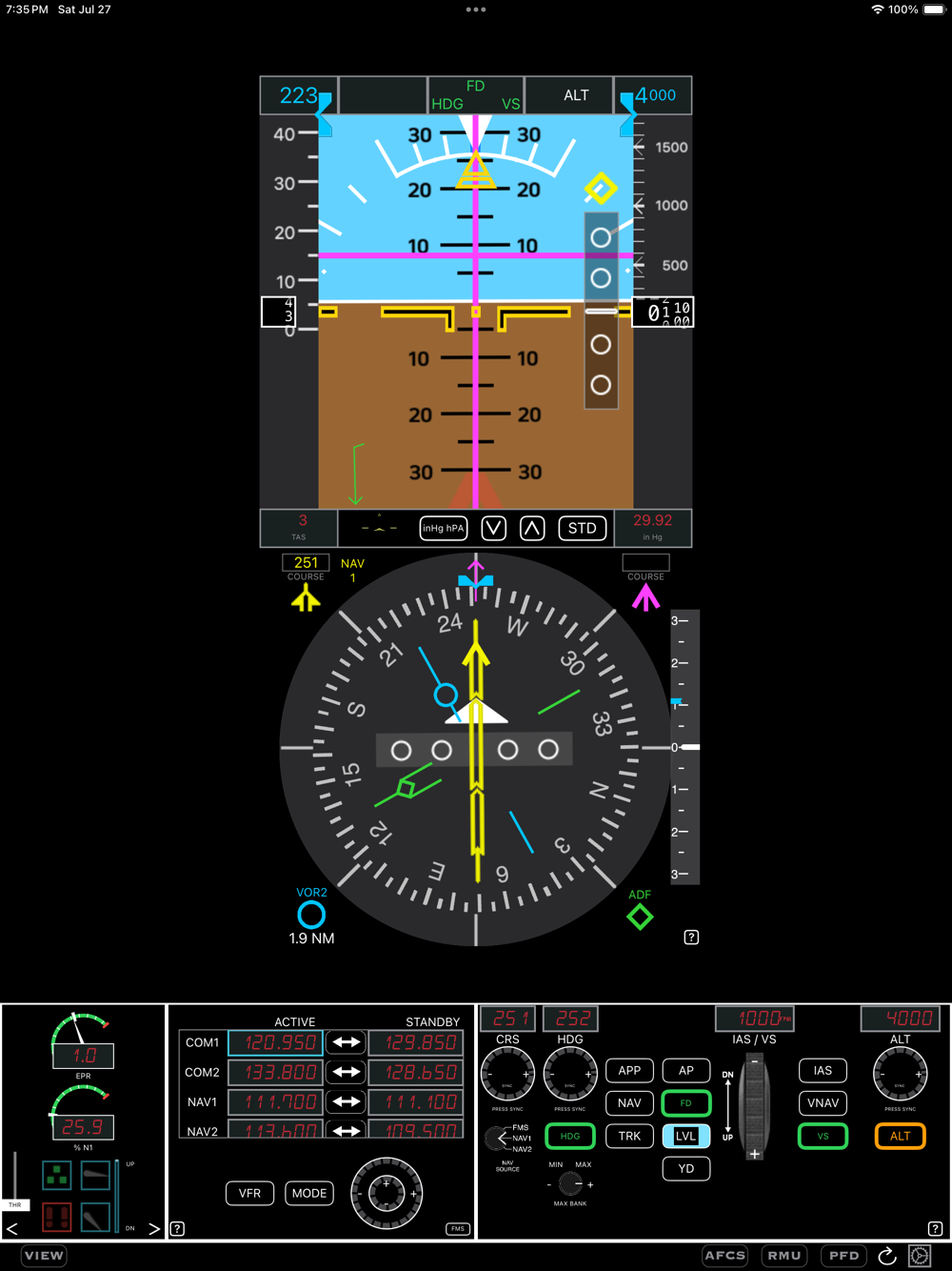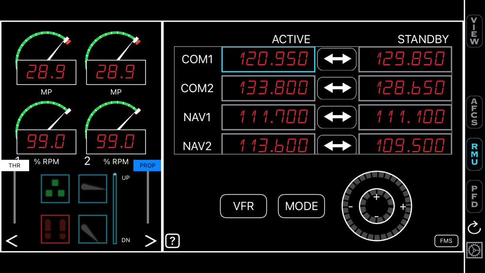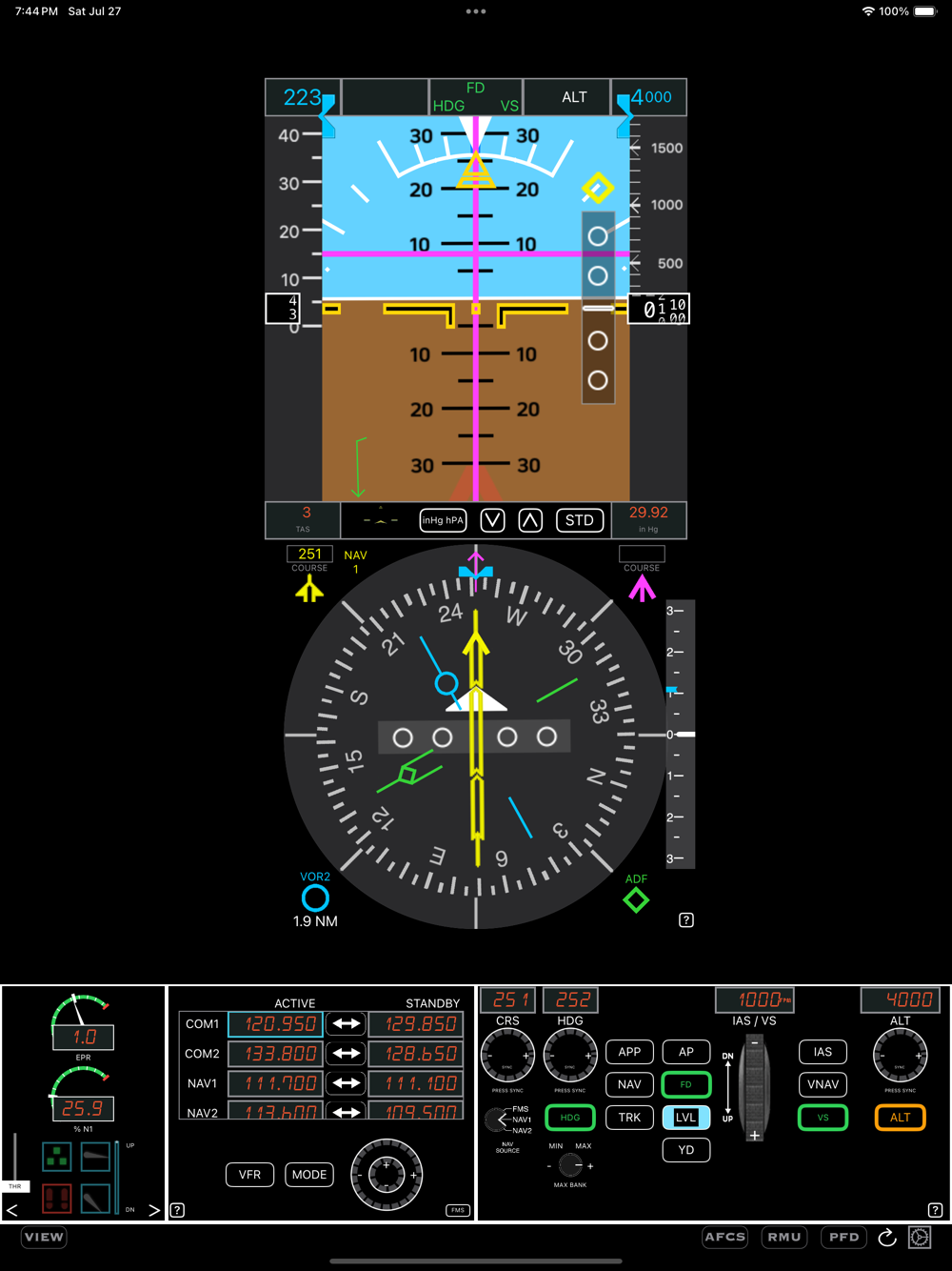 Free your main visual from the internal cockpit view by using your iOS device for the Flight Instruments, Navigation, and Engine Instruments.