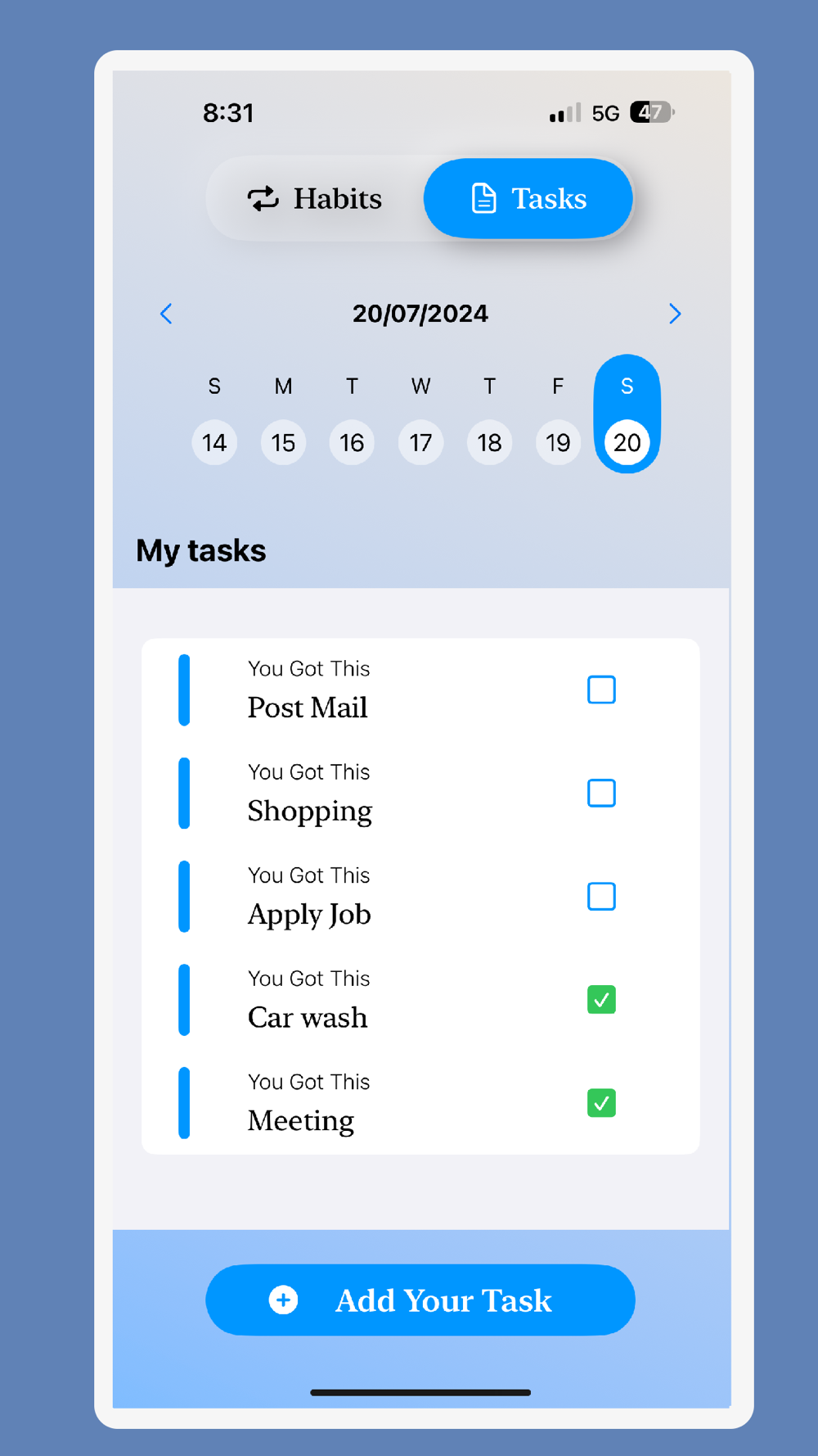 * Mark Tasks as Completed: Stay on top of your daily routine by marking tasks as done.