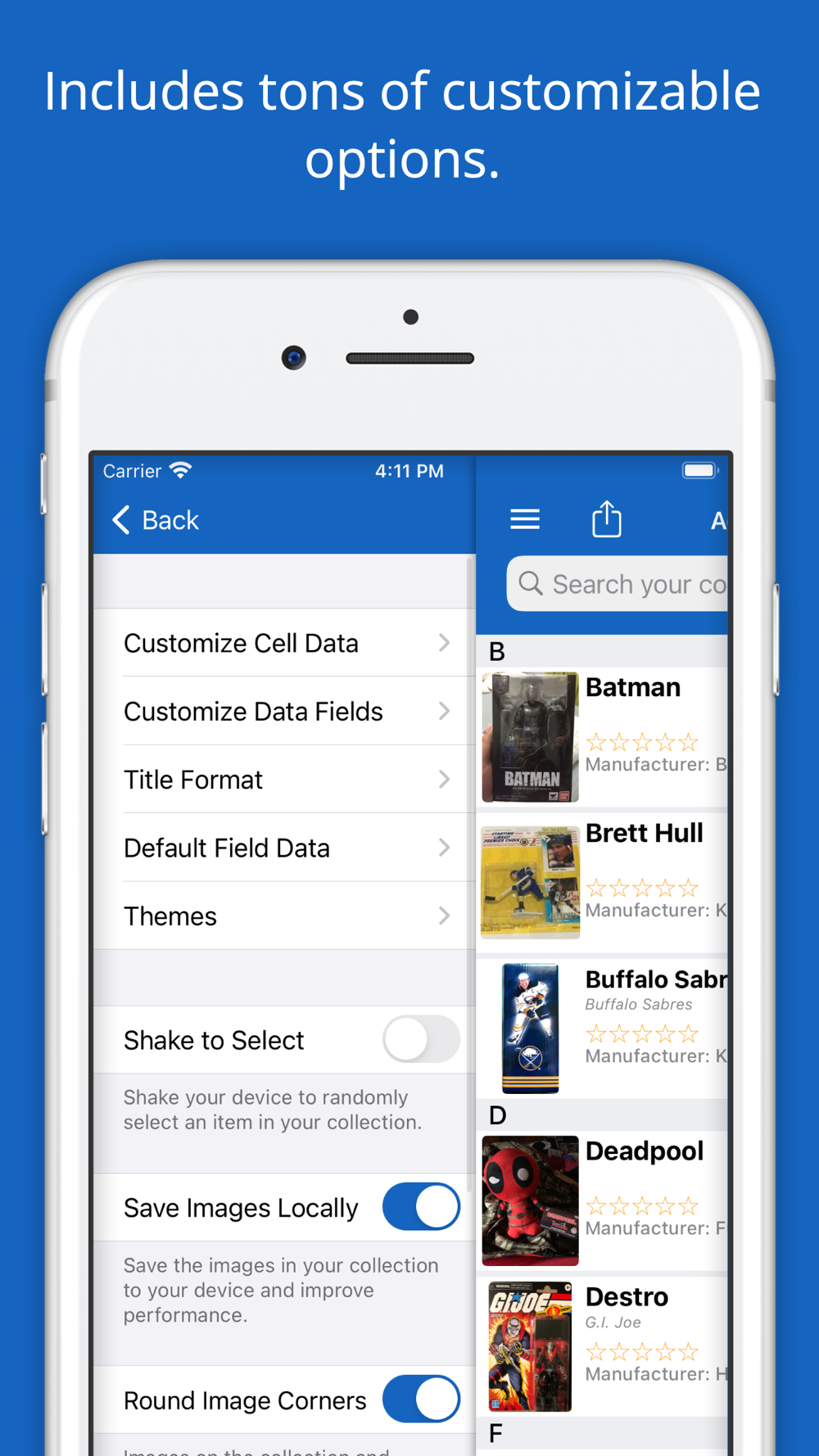 Note: Large collections require an in-app purchase to unlock unlimited storage. You will be prompted when you reach the limits of your selected collectible type.