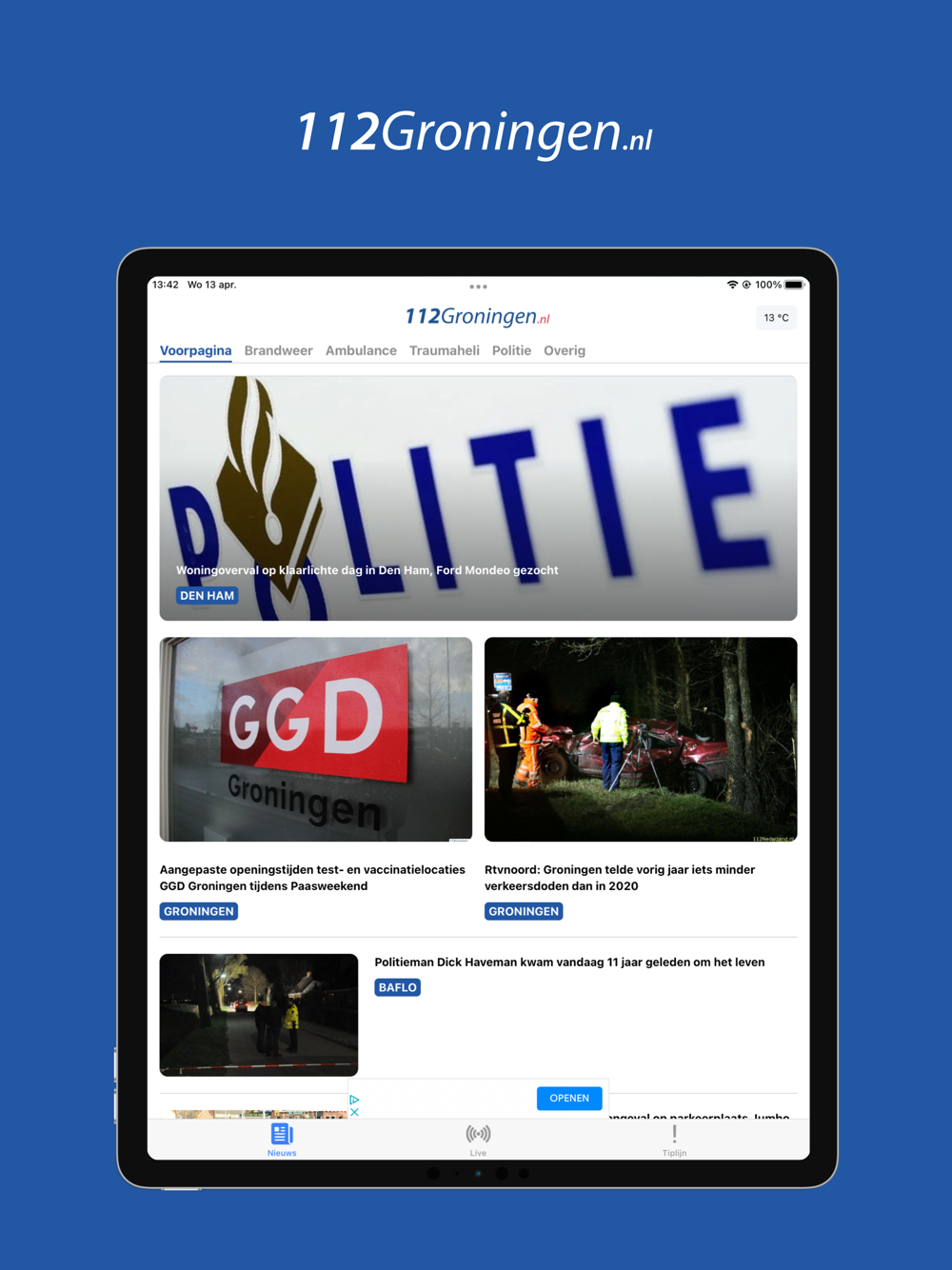De officiële 112Groningen.nl app. Lees gemakkelijk actueel nieuws over de hulpverleningsdiensten uit heel Nederland.