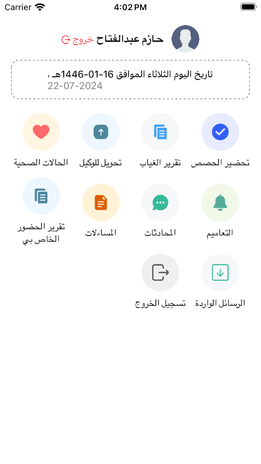 التطبيق الخاص بالمعلم في نظام التحضير الذكي