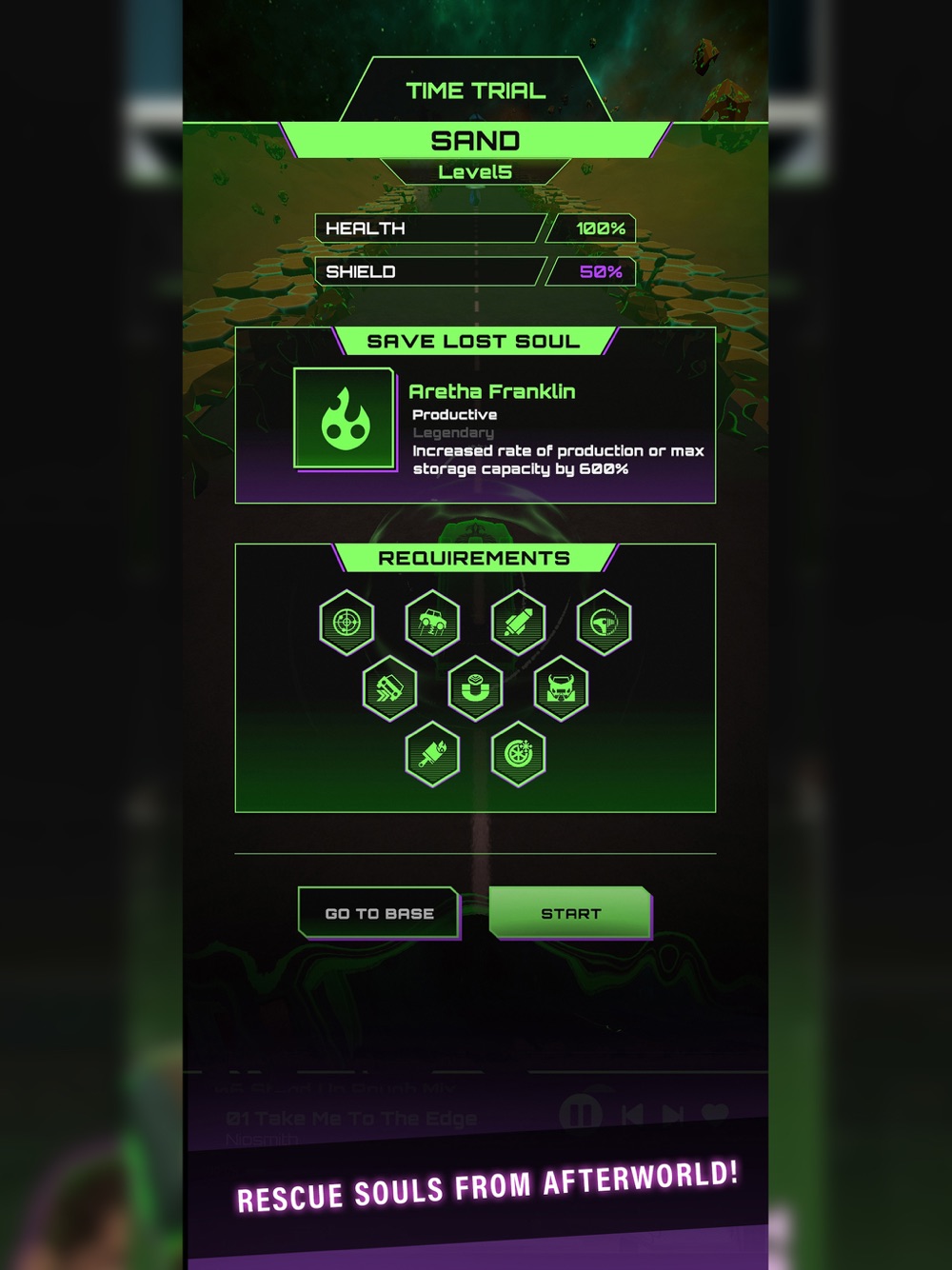 The Afterworld needs your help to stop it from collapsing! Travel the Afterworld's various realms to save lost souls. Dodge and destroy obstacles along the way while stabilizing it with the resonance of music. Build your base, upgrade your car, unlock various abilities, play new music, and above all have some fun!