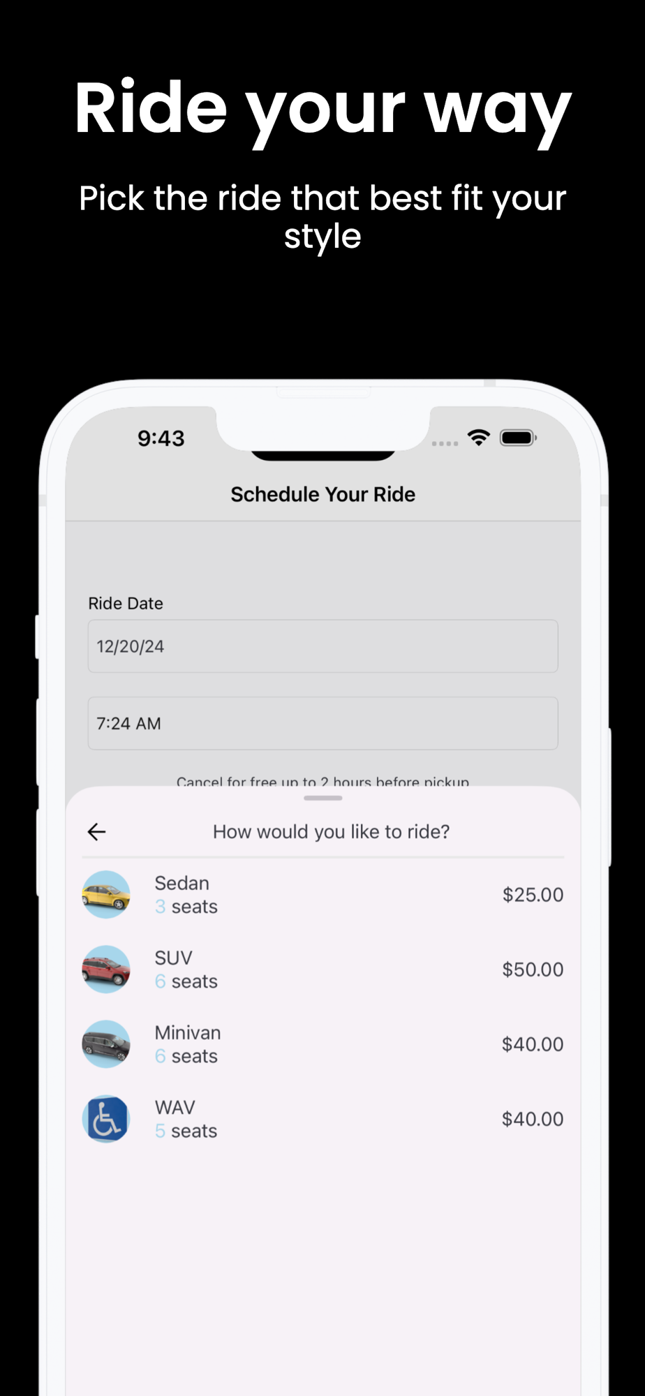 - Perfect for scheduling recurring rides, such as school pickups, doctor appointments, or regular outings.