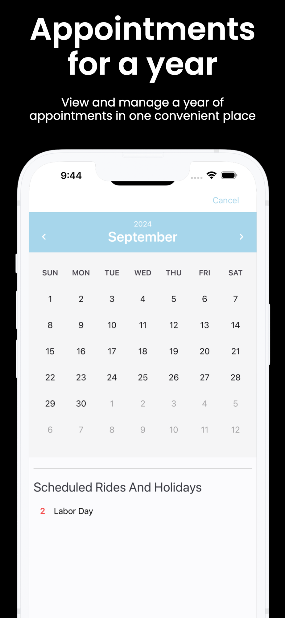 - Track upcoming rides, change your schedule, and receive appointment notifications.