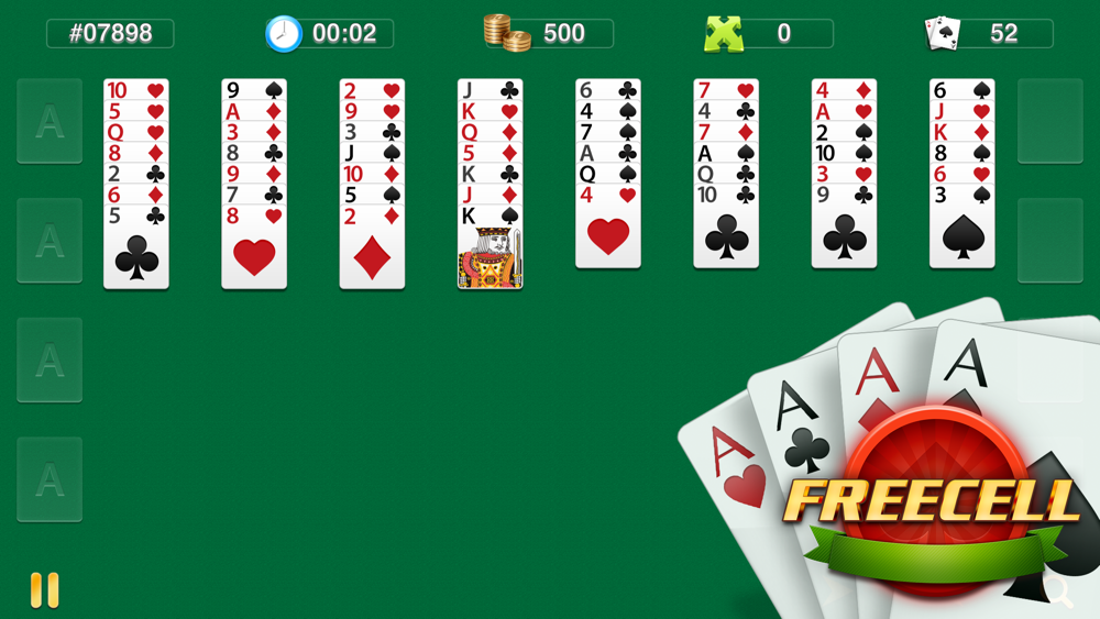 FreeCell is a solitaire-based card game played with a 52-card standard deck. It is fundamentally different from most solitaire games in that nearly all deals can be solved. Although software implementations vary, most versions label the hands with a number (derived from the random number seed used to generate the hand).