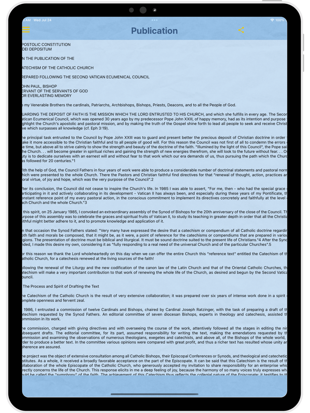 Carry the Catholic Catechism with you at all times, with all its chapters, articles, and paragraphs, and deepen your faith wherever you are.