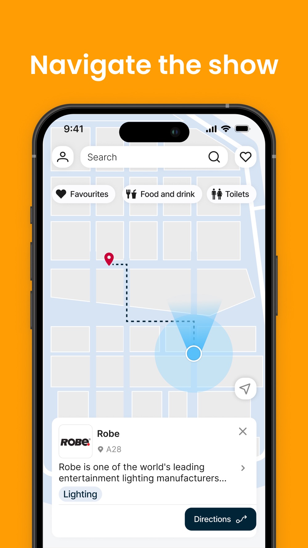 Explore the event and effortlessly find your way from A to B using the interactive map with blue dot navigation.