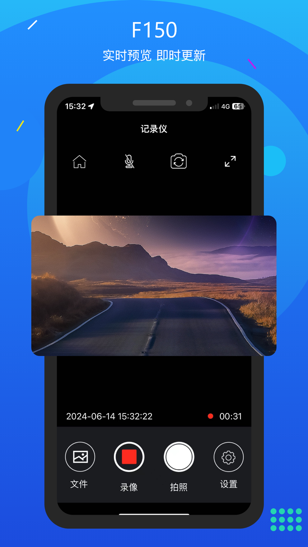 F150 DVR是一款配合行车记录仪以及配合流媒体内后视镜硬件设备的手机端应用软件,此软件通过WIFI连接硬件设备,支持高清视频/图片,在线预览、回放、下载等操作,让驾驶员操作更便捷。