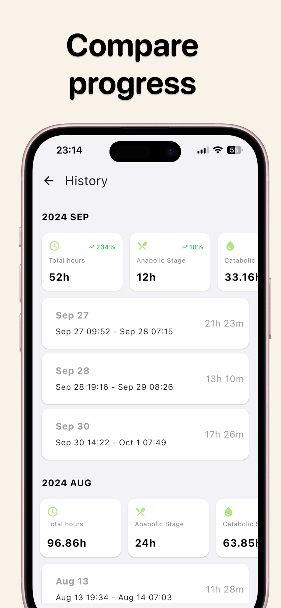 * Fasting history log to track your progress