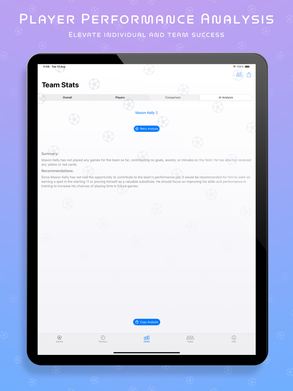 • Receive personalized player analysis and improvement recommendations