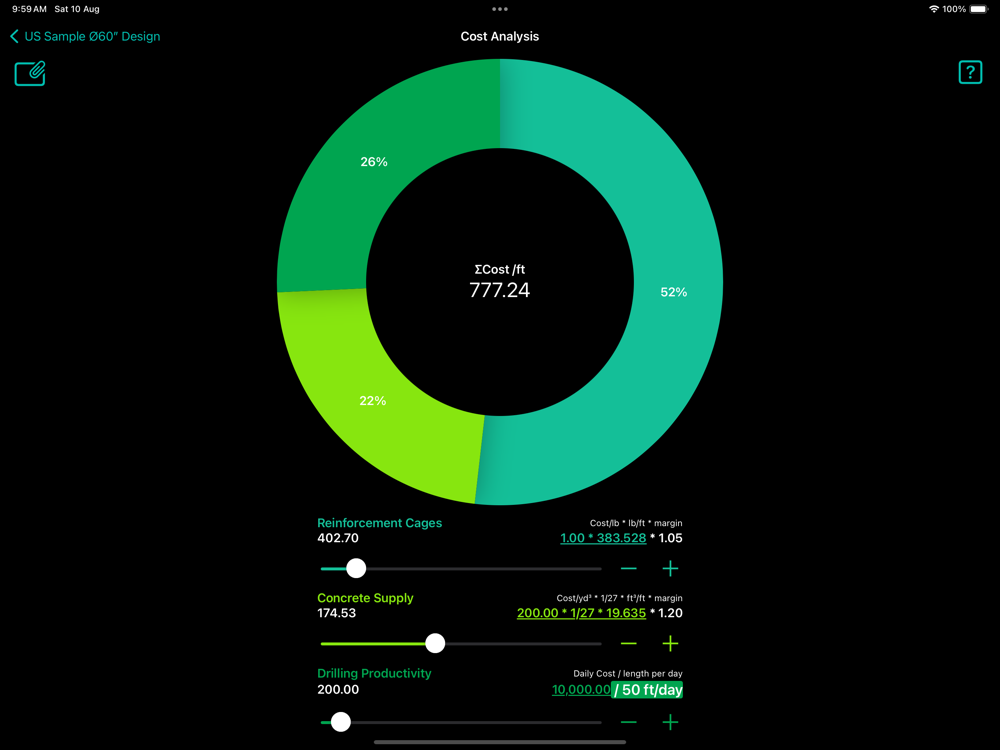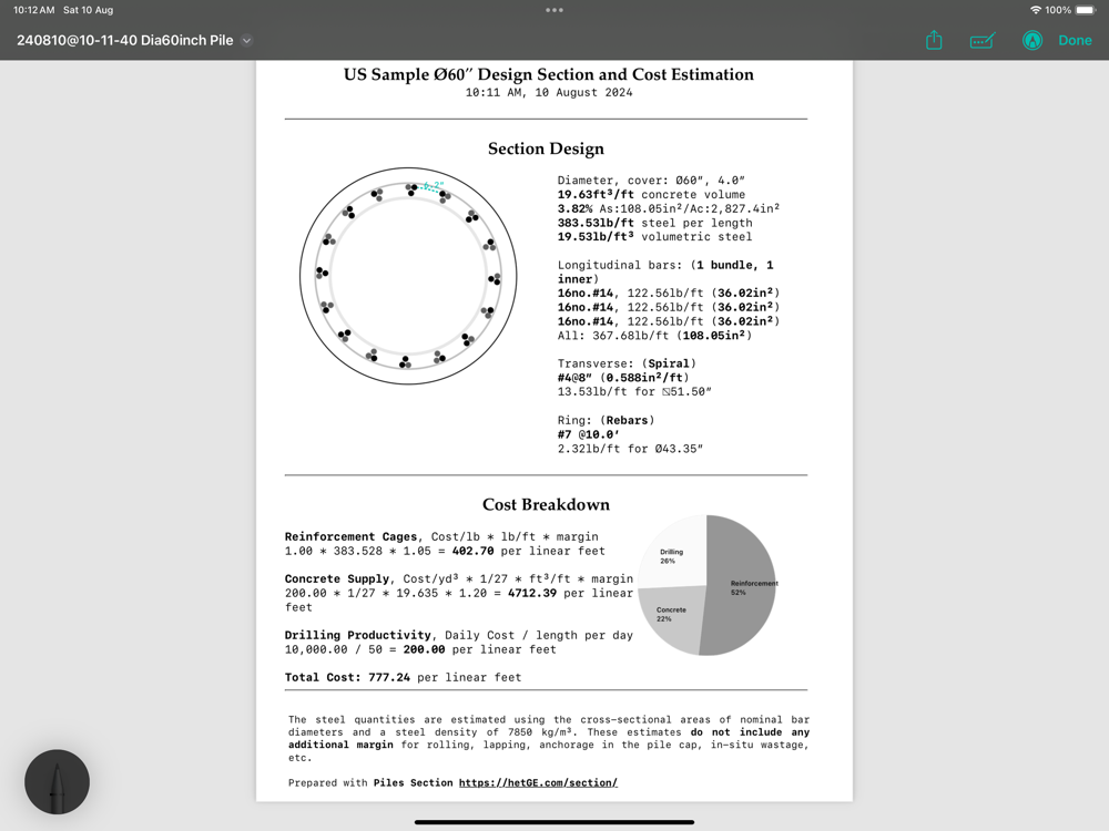 • Cost Calculation and Breakdown: Calculate cost breakdowns based on user-defined material and workmanship rates, margins (for wastage and markup), and daily piling productivity. Get a clear understanding of your piling expenses and make informed decisions.