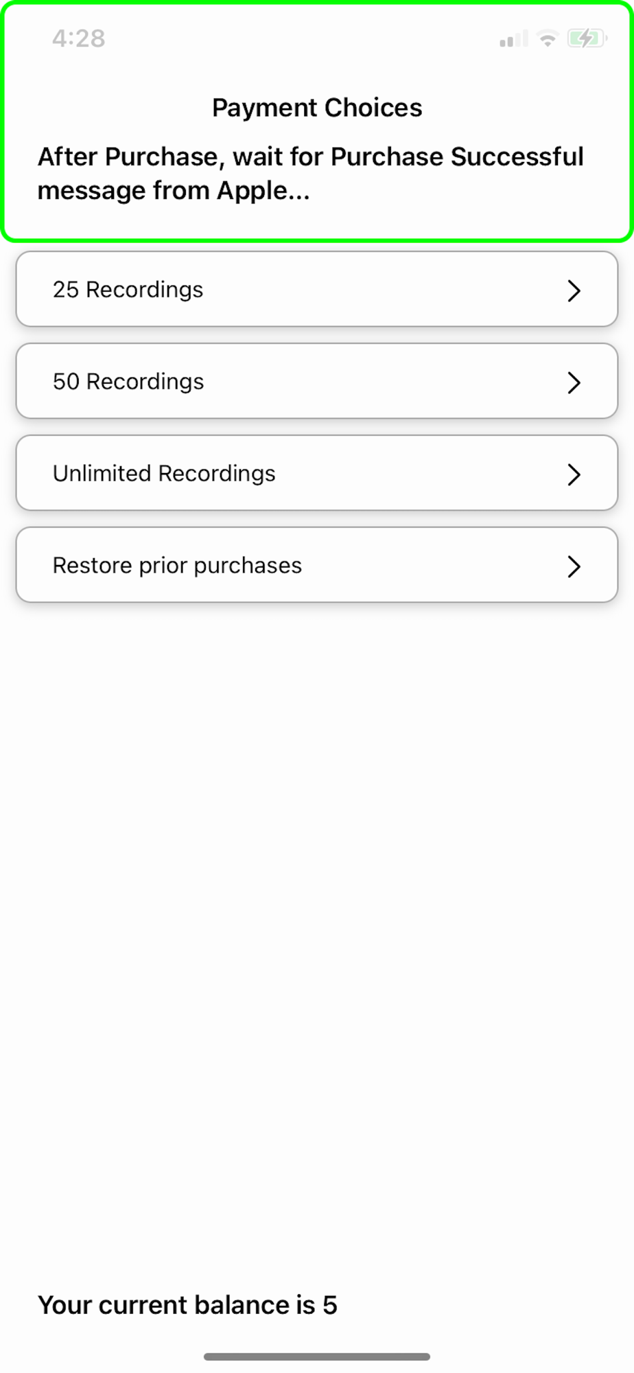 -Initial download permits 5 recordings. Additional recordings need in-app purchases
