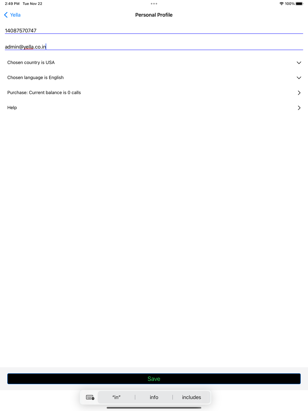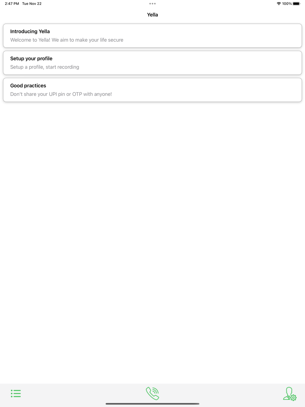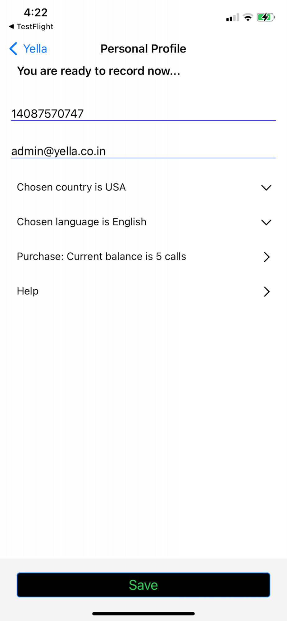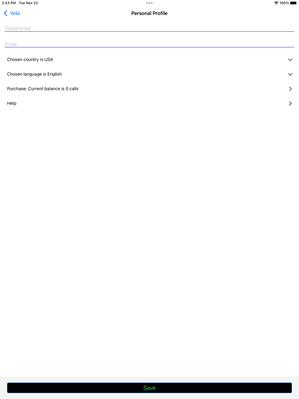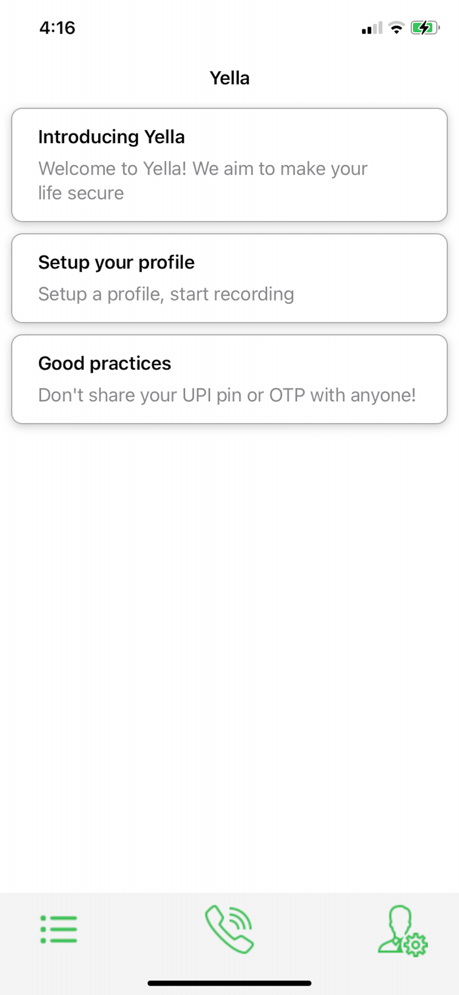-Dial Yella service by pressing the middle tab in the HomeScreen
