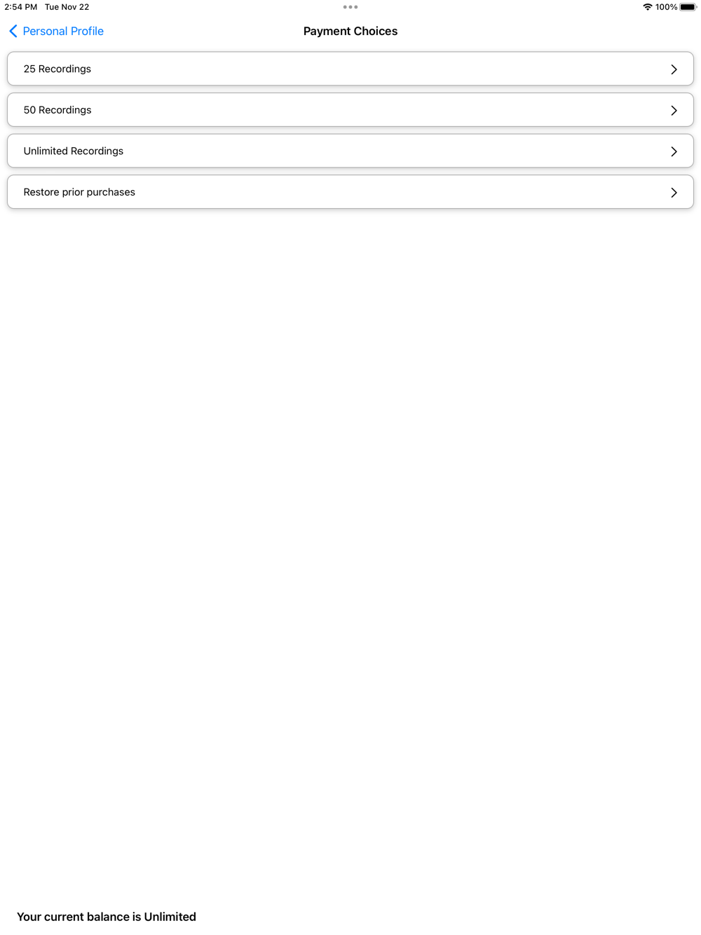 To restore purchases (on a new phone or a fresh installation), save your previously entered profile settings. Then click on the Restore button in the Purchases view. Your Balance will be updated (if you have done a previous purchase).