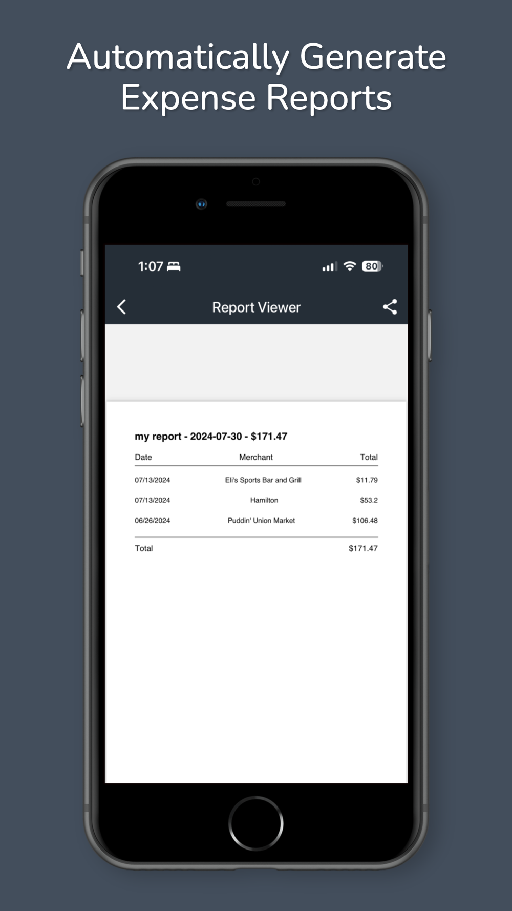 Detailed Reports: Generate comprehensive, IRS-ready expense reports and export them to platforms like QuickBooks Self-Employed, Wise, or Divvy.