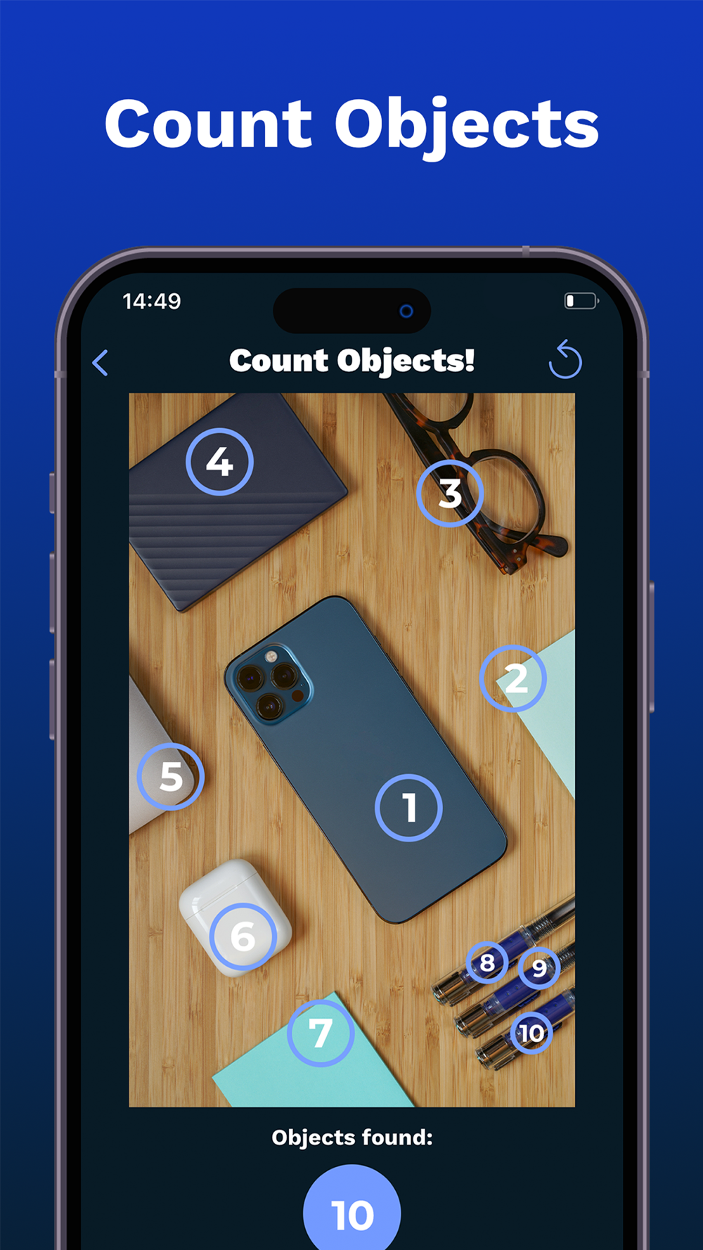 - Object Counter: Snap a photo and count the objects in it effortlessly by tapping them yourself. After tapping, you will see how many objects are in the photo.