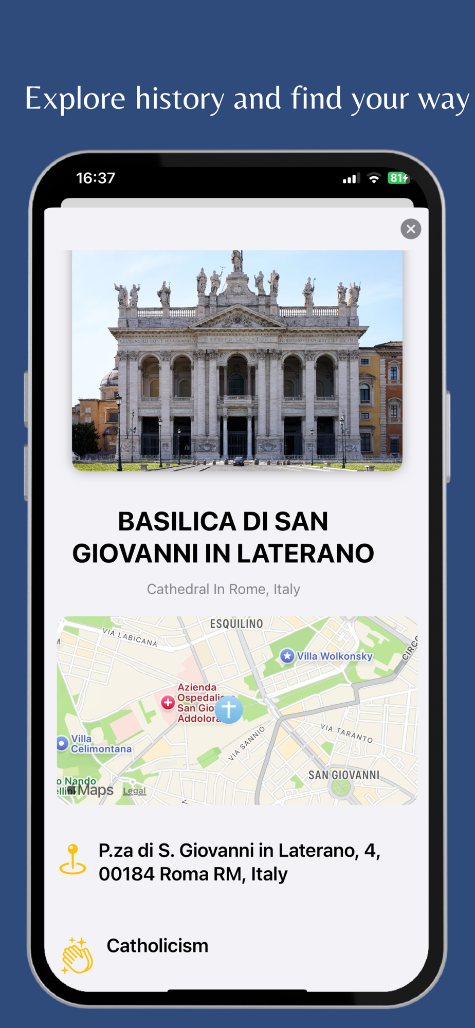 • Church Finder and Maps: Locate iconic churches and basilicas in Rome with interactive maps and detailed navigation.