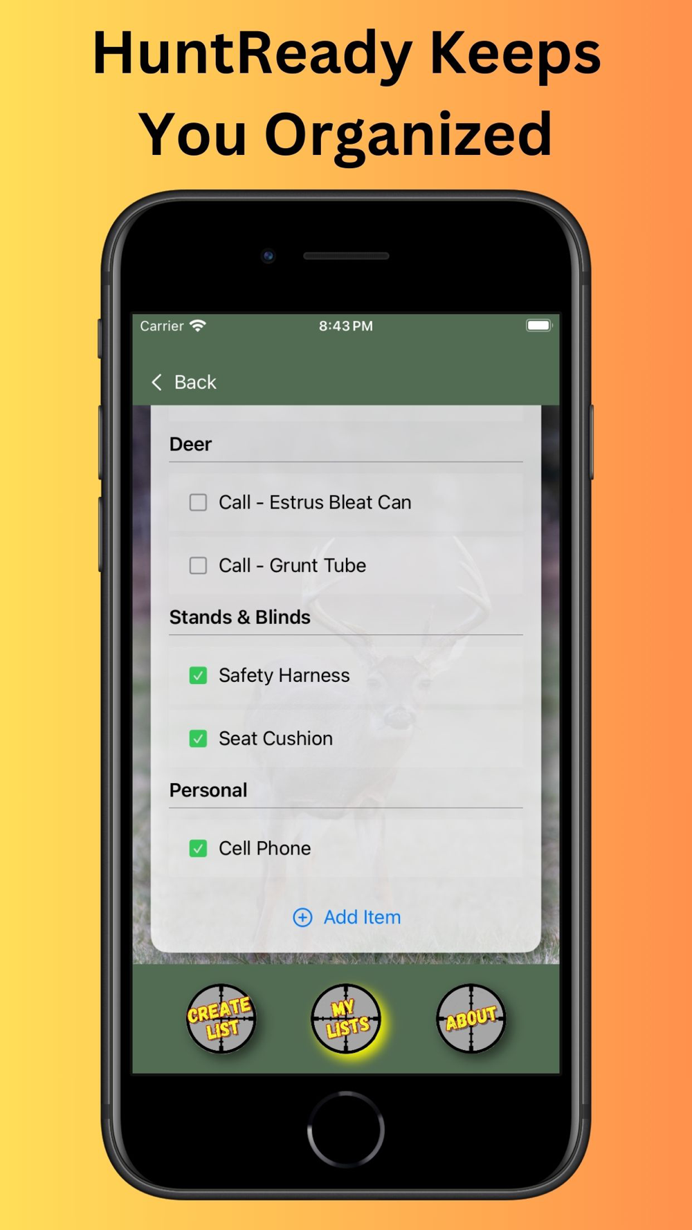 * Category-Based Selection: Our app guides you through selecting different categories from which to choose your items, making it easy to build comprehensive checklists. Whether you hunt for deer or turkey, or prefer to hunt with a bow or muzzleloader, HuntReady has you covered.