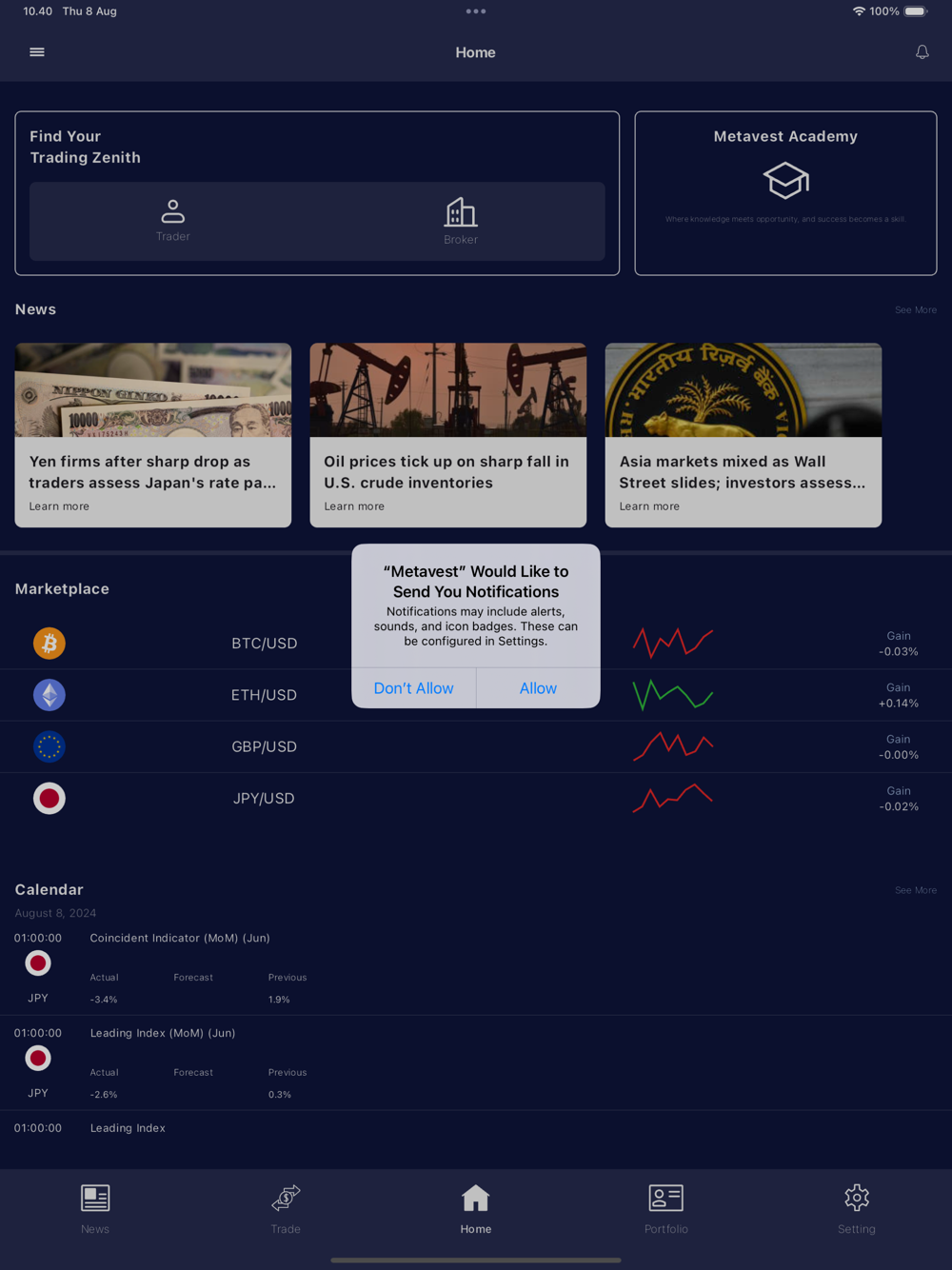Metavest is Information Portal trading marketplace platform for forex, stocks, gold, and crypto.