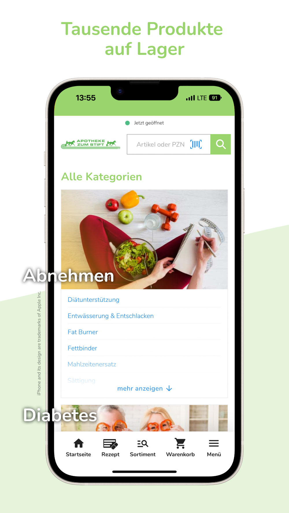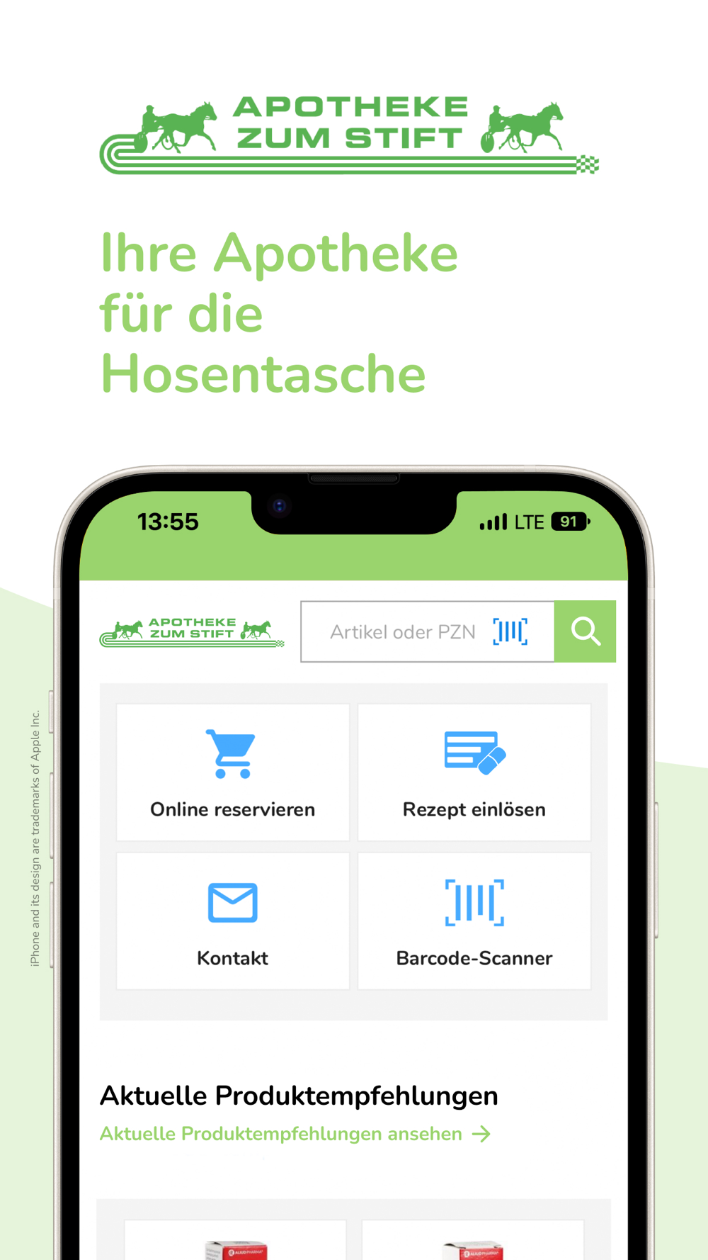 Wir bieten Ihnen über die App unser gesamtes Sortiment. Nicht sofort verfügbare Produkte bestellen wir für Sie und machen Sie in der Regel bis zum nächsten Werktag abholbereit. Gerne liefern wir Ihnen Ihre Bestellung per Botendienst direkt nach Hause.