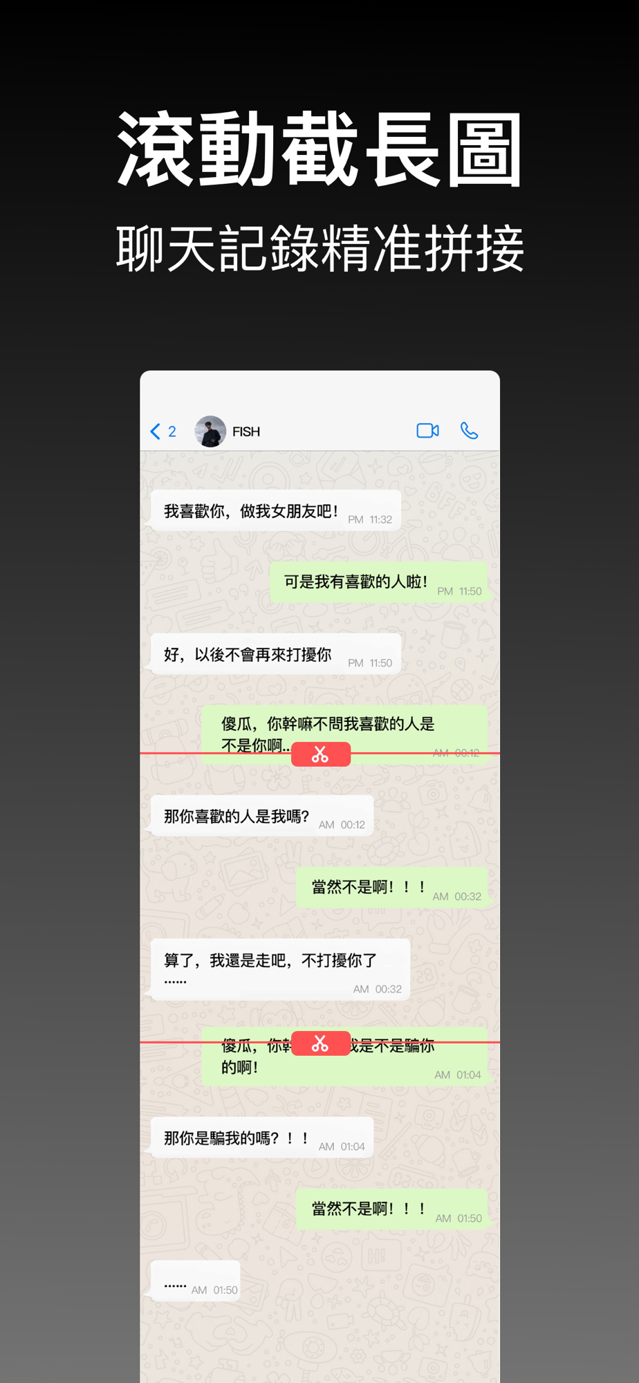 使用長截圖App自動無縫地將您的截圖拼接成一張長圖。輕鬆拼接您的聊天記錄、網頁、筆記、待辦事項等!