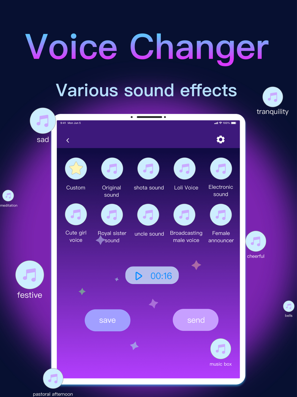 You can choose to make your voice like a female voice, male voice, electronic music, old man's voice or other sound effects.