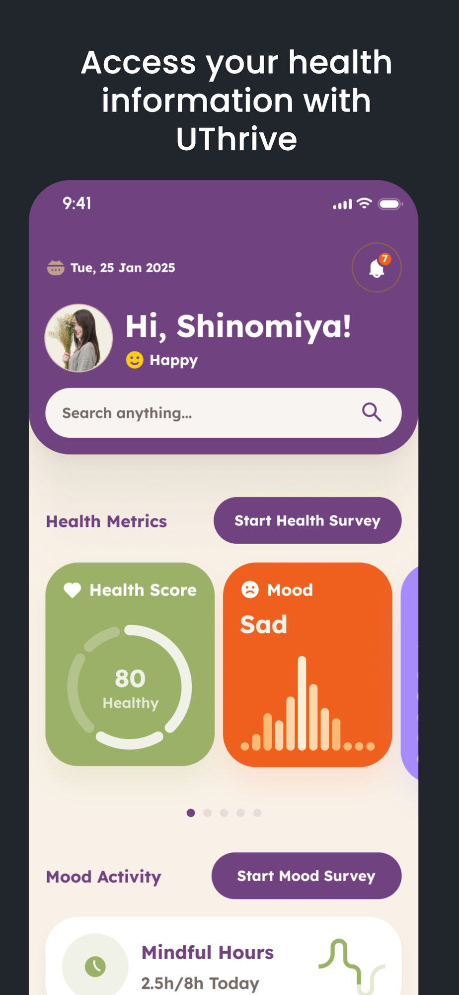 UThrive offers a comprehensive mental health solution through mood and health surveys. Users can assess their well-being, review detailed scores, and schedule consultations with medical professionals. This app provides a streamlined approach to managing mental health, combining advanced tracking tools with expert guidance for an informed and proactive wellness journey.