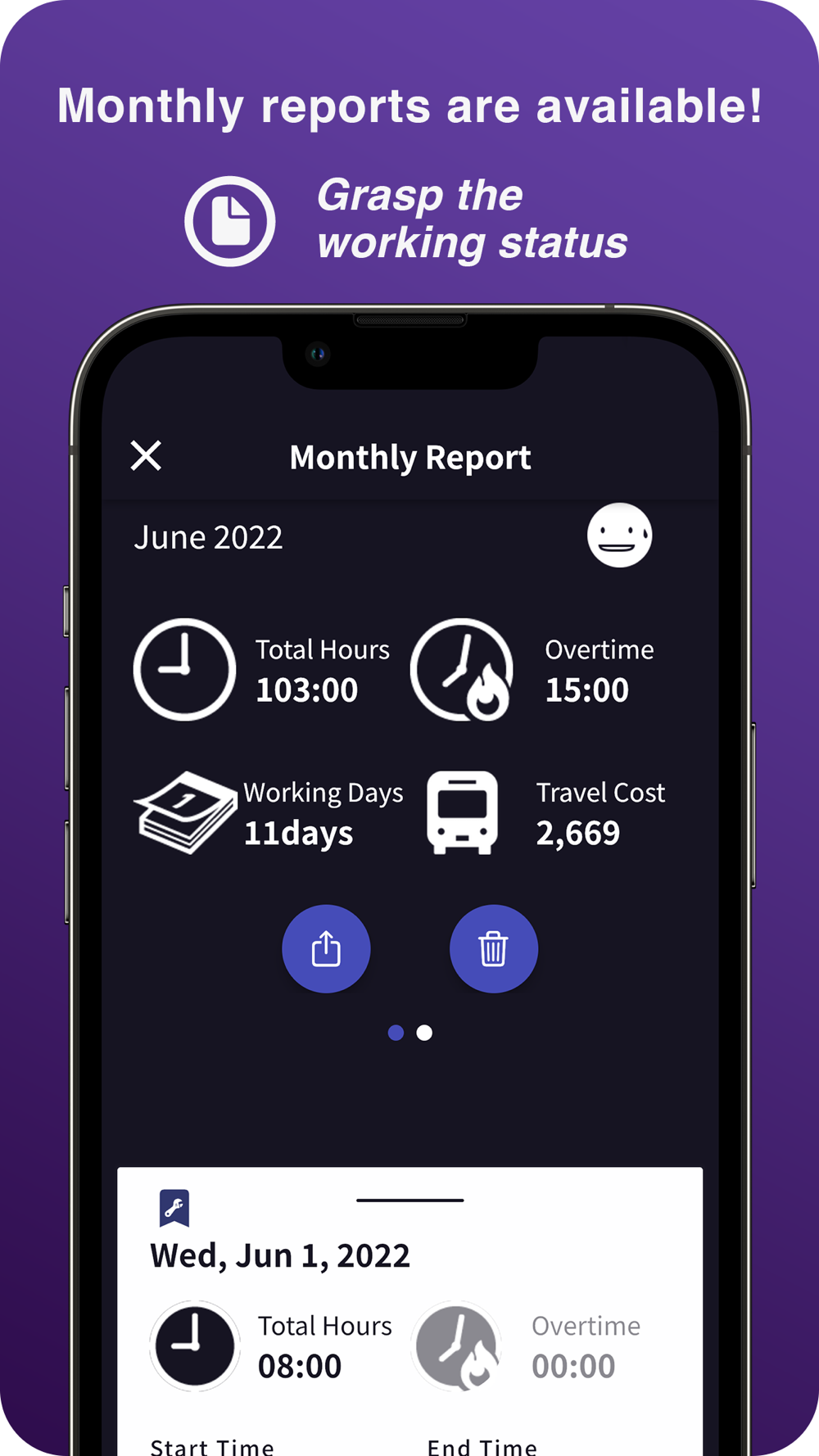 For monthly attendance reports, part-time job calculations, in case of some problem... You can easily record (imprint) your daily working hours in place of a time card.