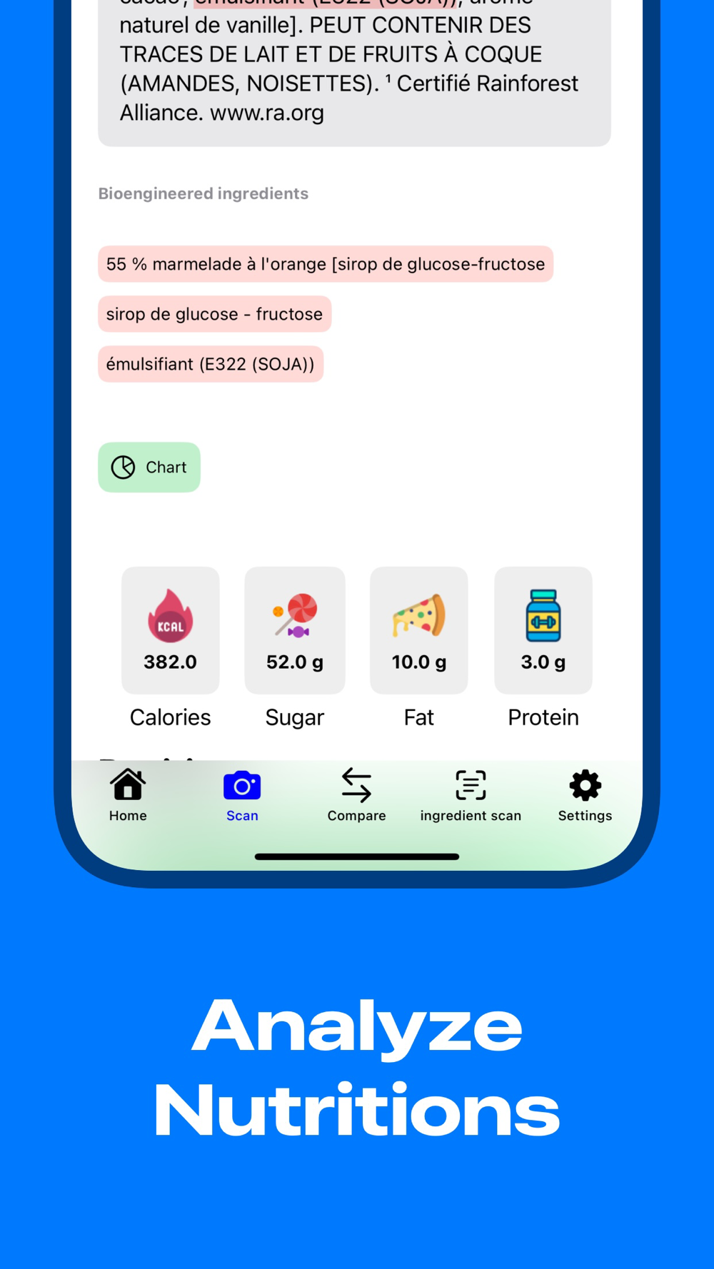 - Quickly identify vegan-friendly additives in packaged foods.