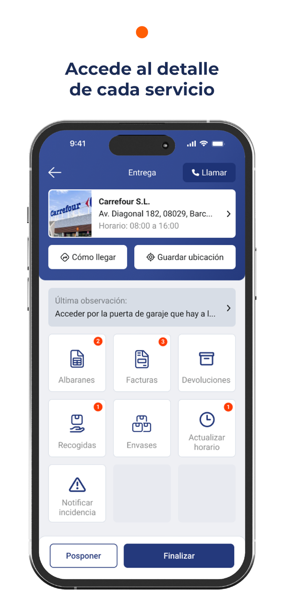 -Tendrás acceso a todas tus rutas, tanto en un listado con los puntos de entrega, así como en un mapa.