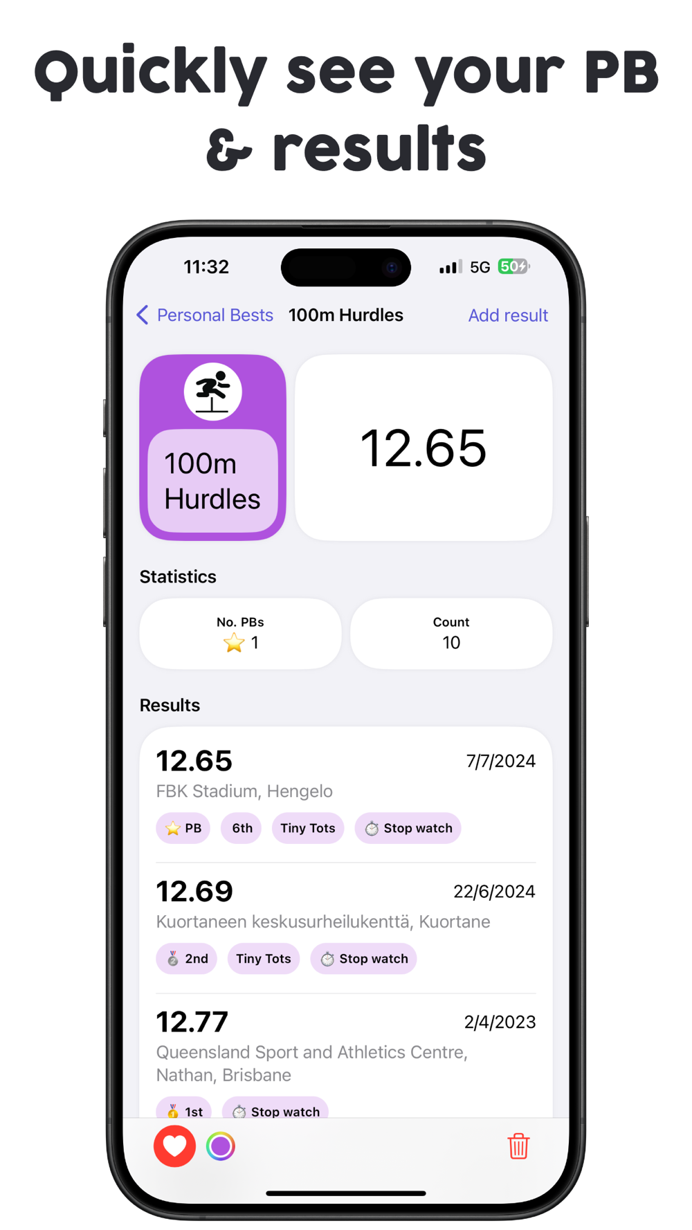 PB Tracker makes it effortless to record and manage all your personal bests in track & field. Whether you’re a sprinter, distance runner, hurdler, or jumper, PB Tracker keeps all your achievements in one place. Simply input your event results, and the app will automatically track your personal bests, so you’ll never lose sight of your progress.